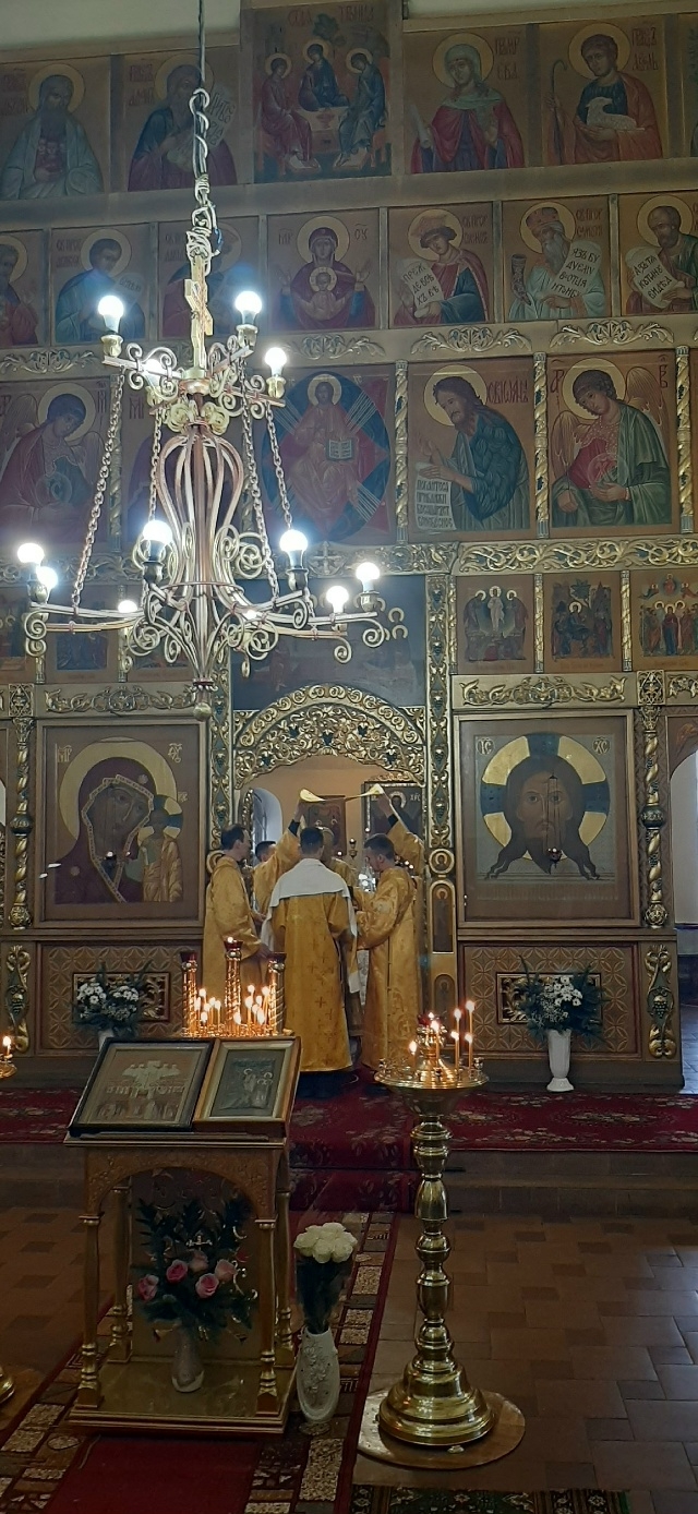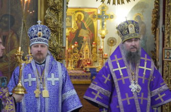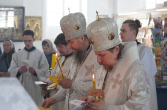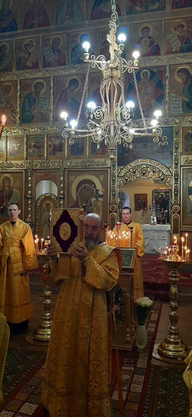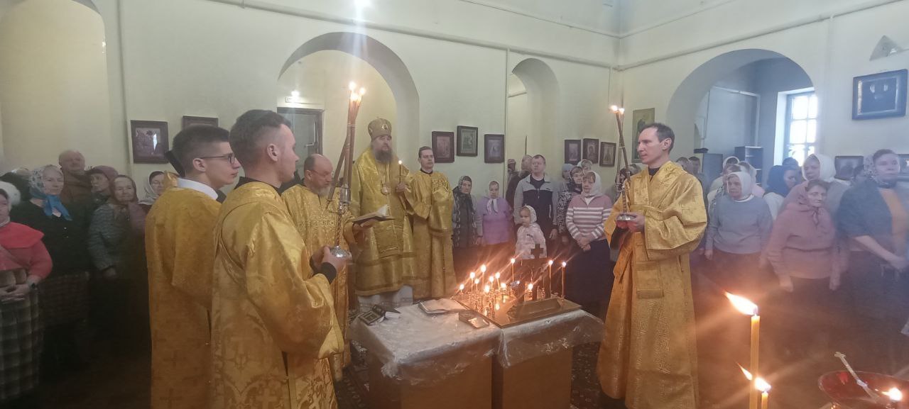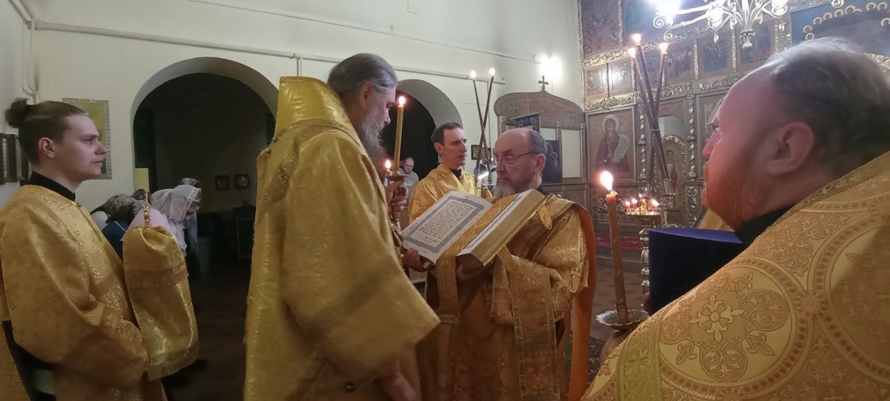 Владыке сослужили: настоятель Князь-Владимирского храма протоиерей Михаил Волков, настоятель Стефановского храма протоиерей Дмитрий Фомин, а также диакон Александр Гайкин.