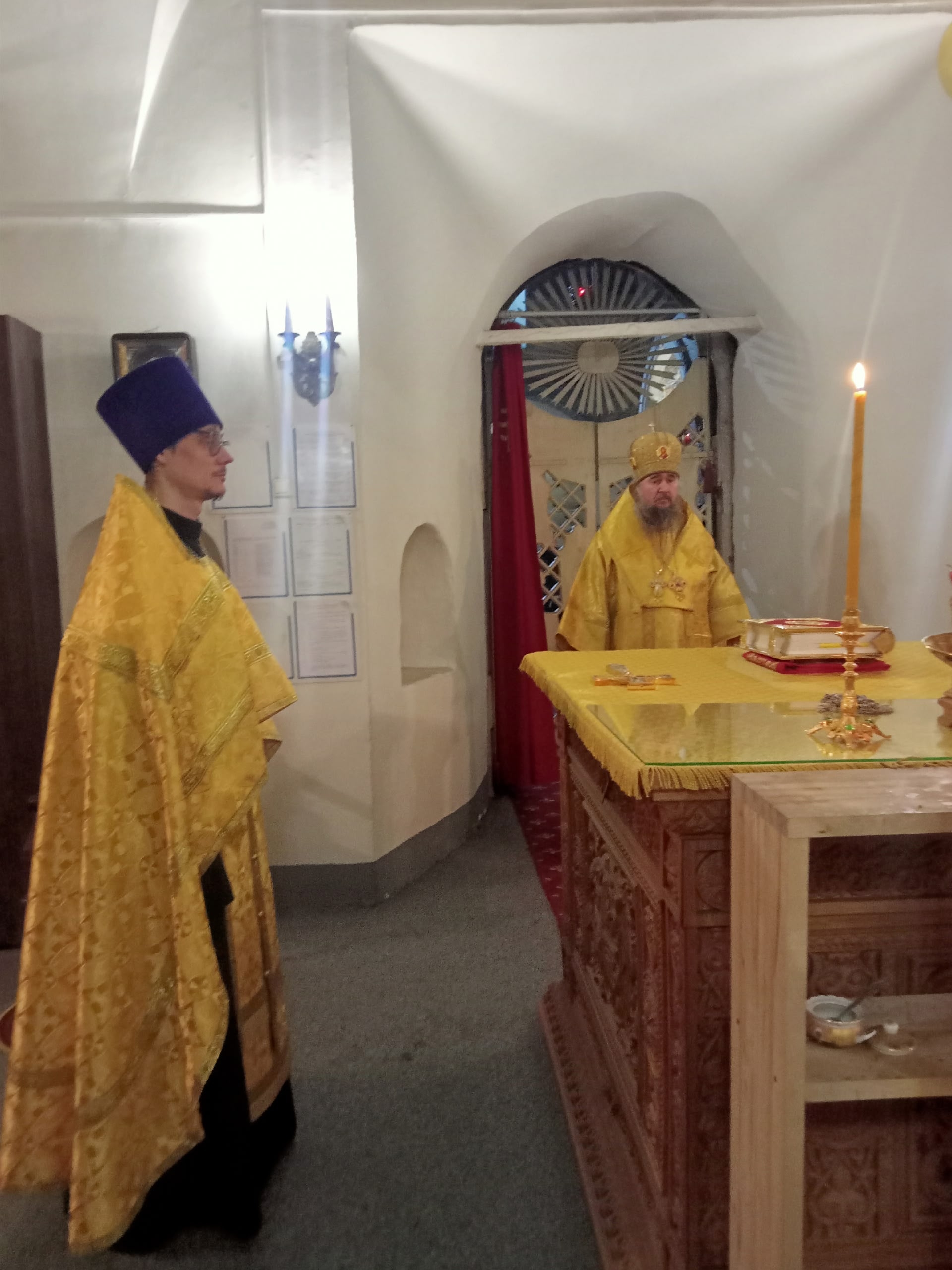 Владыке сослужил настоятель храма Александра Невского в Кичменгском Городке иерей Олег Викторов.