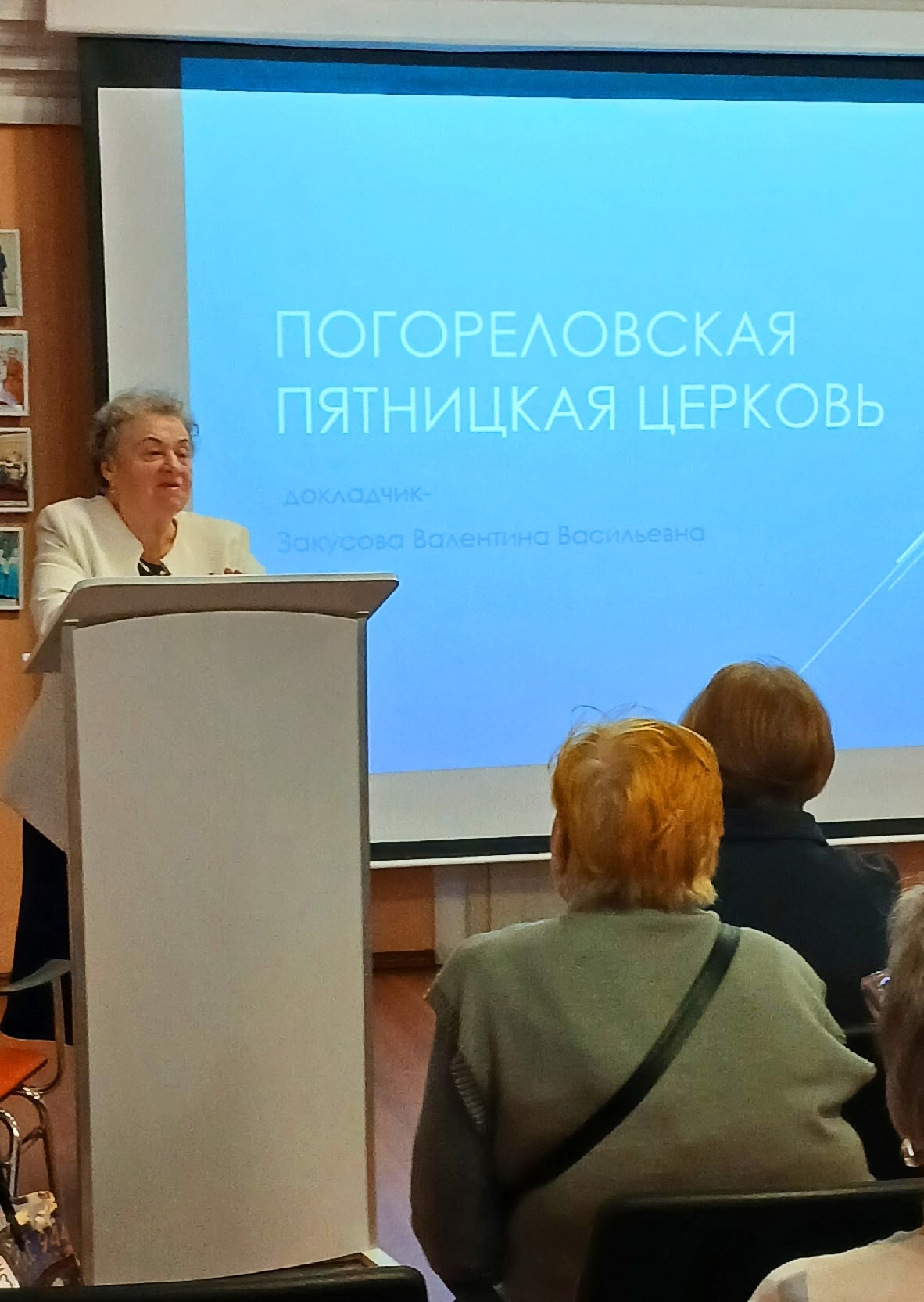 Краевед Валентина Васильевна Закусова познакомила слушателей с непростой судьбой священника Сергия Рохлецова, чьё служение в Пятницком приходе стало примером истинной веры и стойкости. В 2000 году отец Сергий Рохлецов был причислен к лику святых в числе новомучеников и исповедников Русской Православной Церкви.
