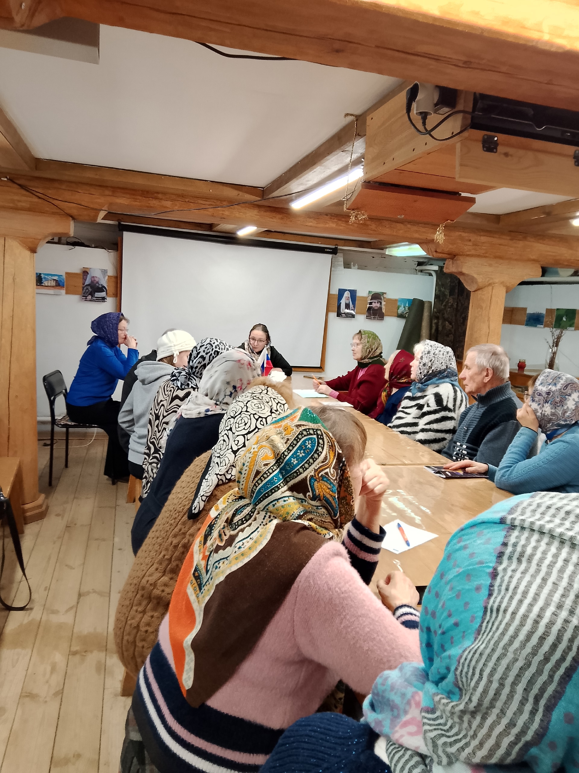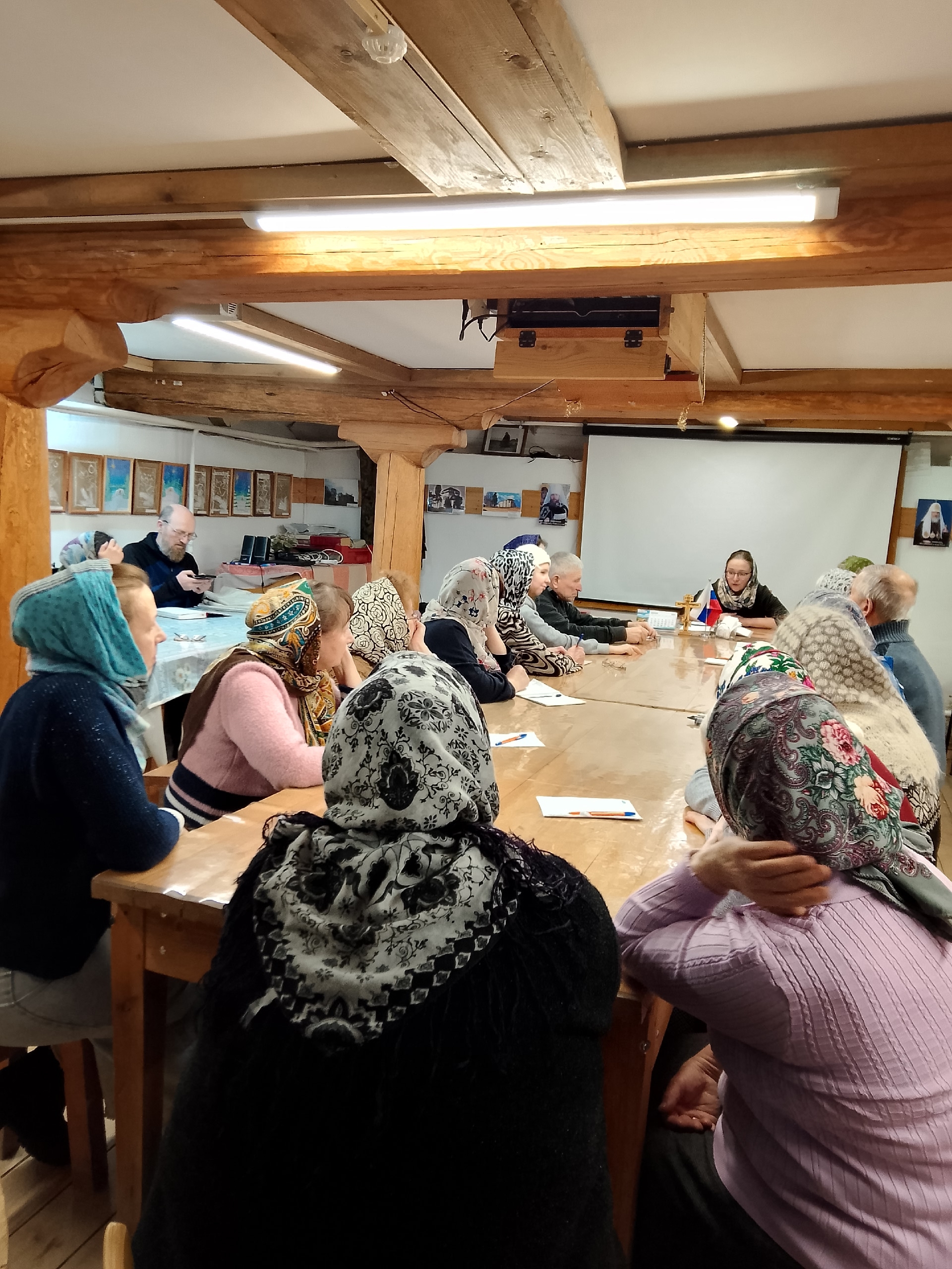 Очередное занятие воскресной школы для взрослых в храме преподобного Агапита Маркушевского с. Нюксеница прошло в Неделю сыропустную — Прощёное воскресенье. Матушка Мария Кривошанова рассказала собравшимся о Прощеном воскресенье, Великом покаянном каноне Андрея Критского, который читается во всех храмах с понедельника по четверг на первой седмице Великого поста.