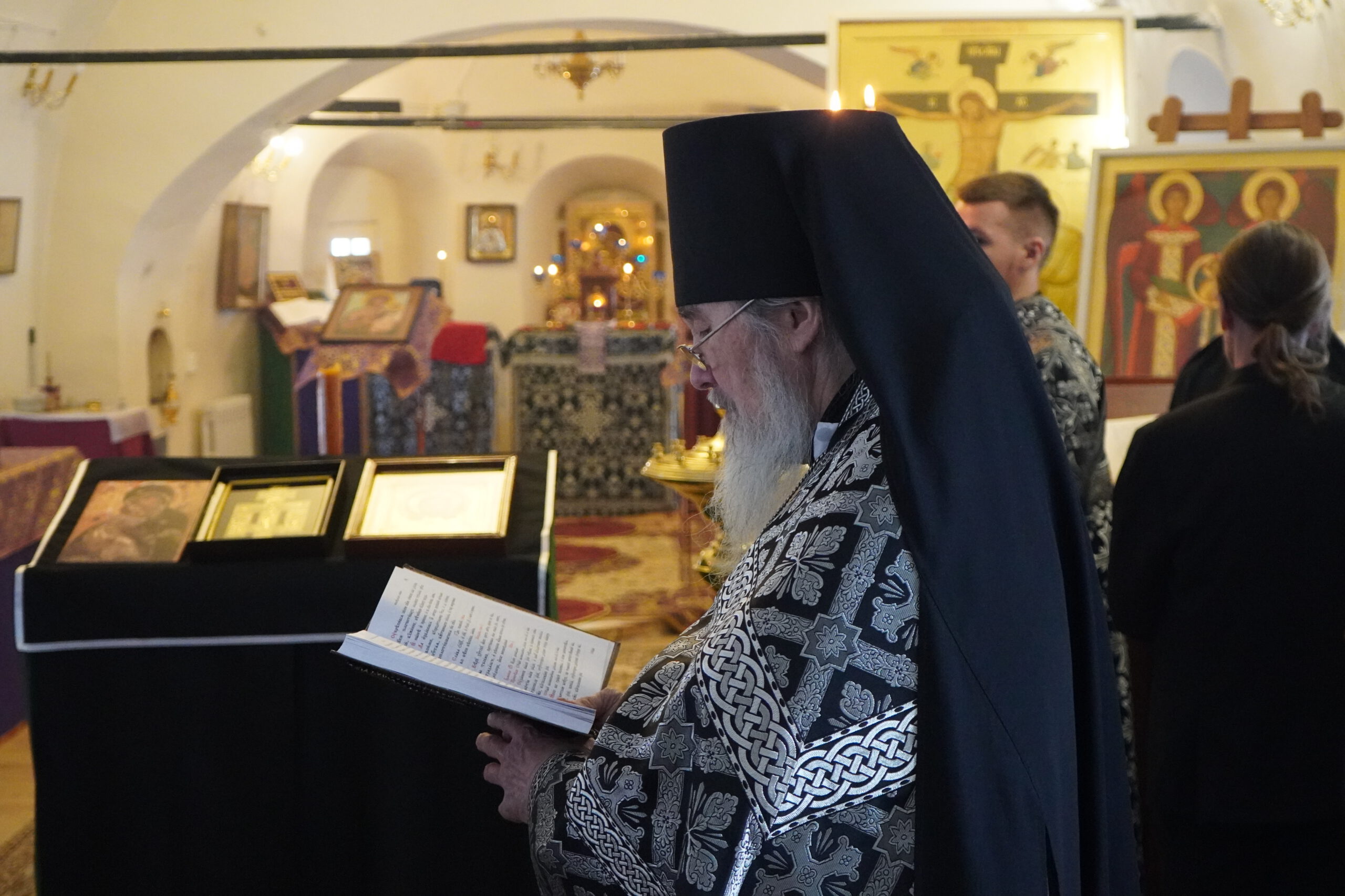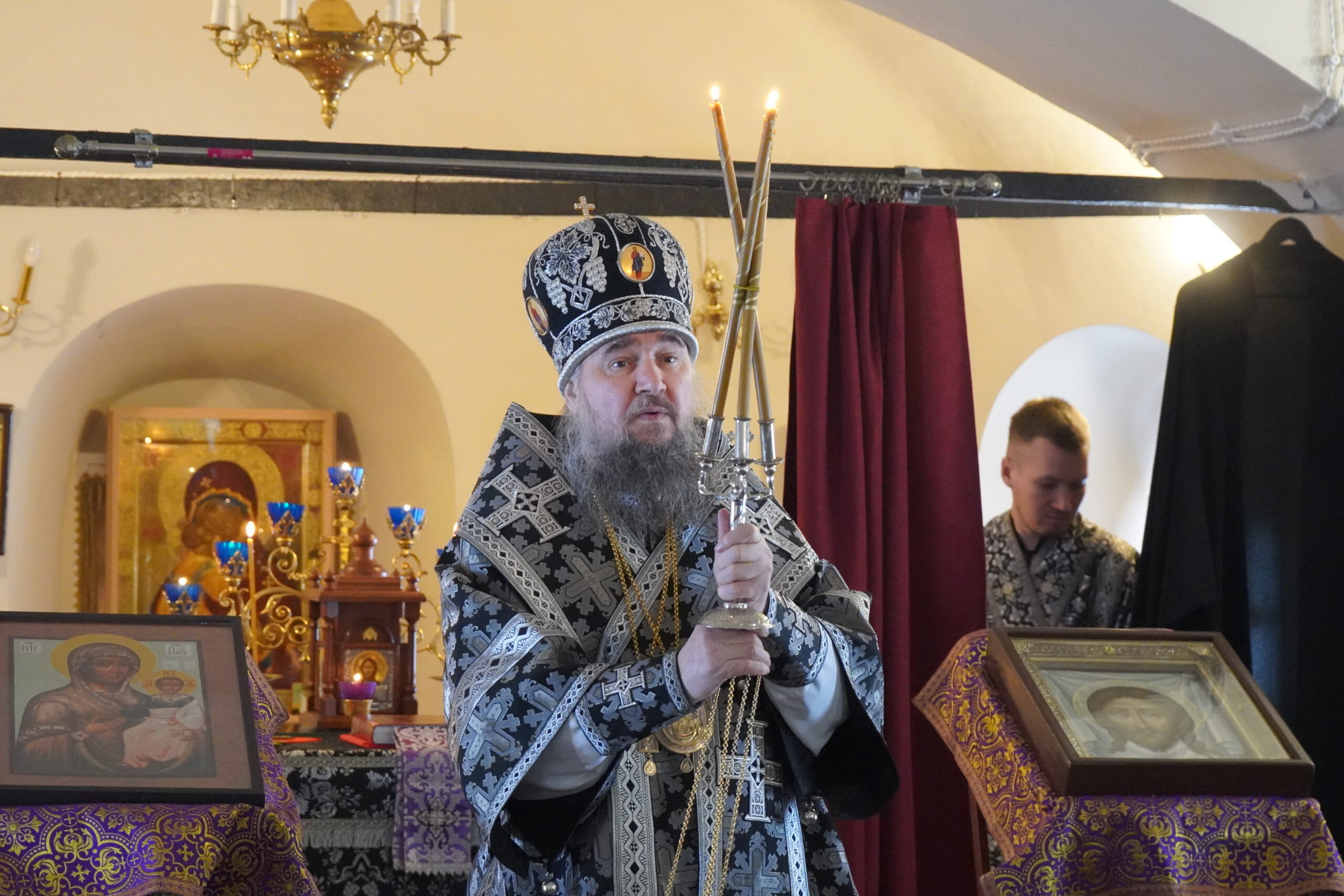 Владыке сослужили: иеромонах Иоаким (Угдужеков), настоятель Михайло-Архангельского монастыря, а также иеромонах Леонид (Конев), клирик Стефановского храма.