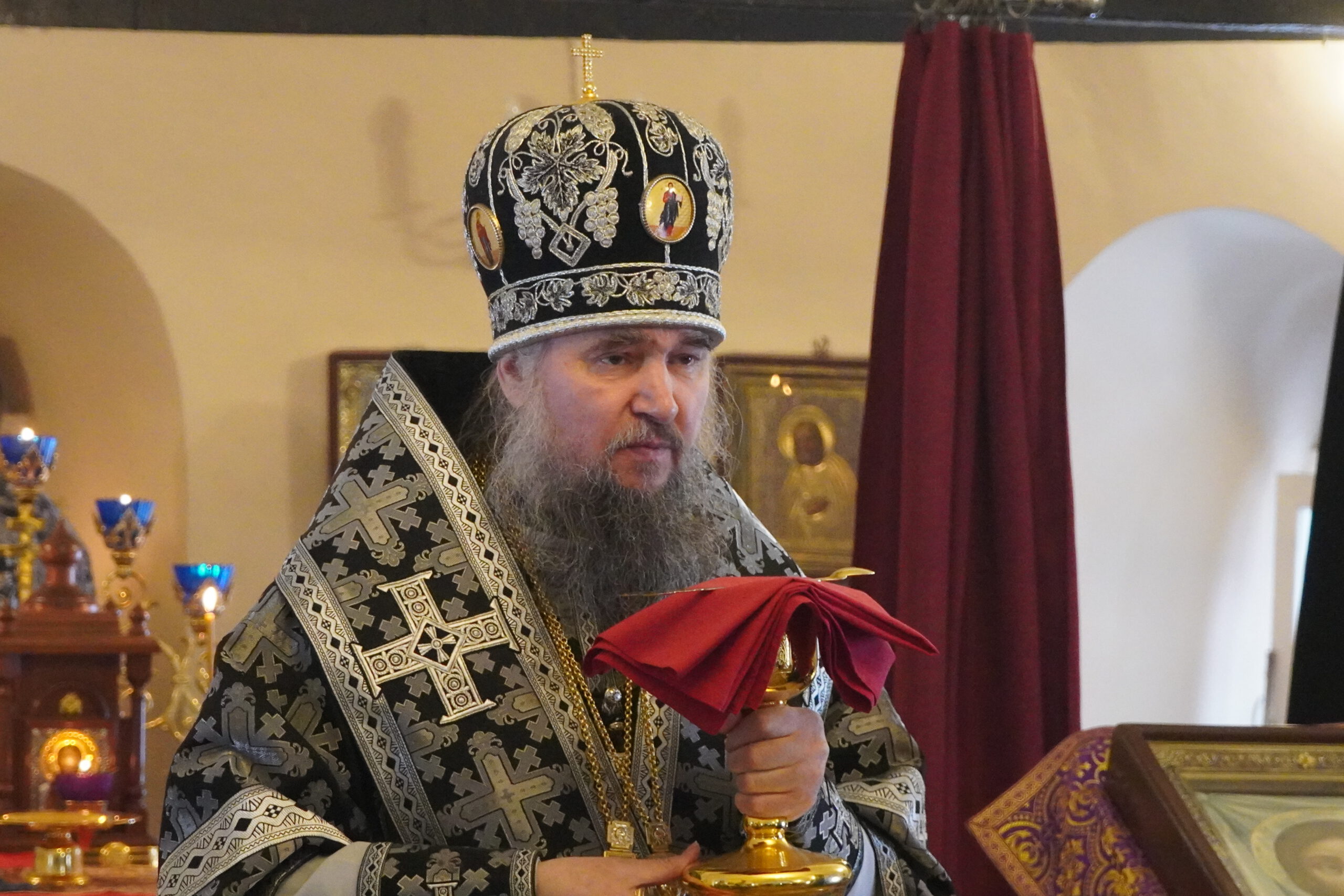27 февраля епископ Великоустюжский и Тотемский Фотий совершил Литургию преждеосвященных Даров в Михайло-Архангельском монастыре Великого Устюга