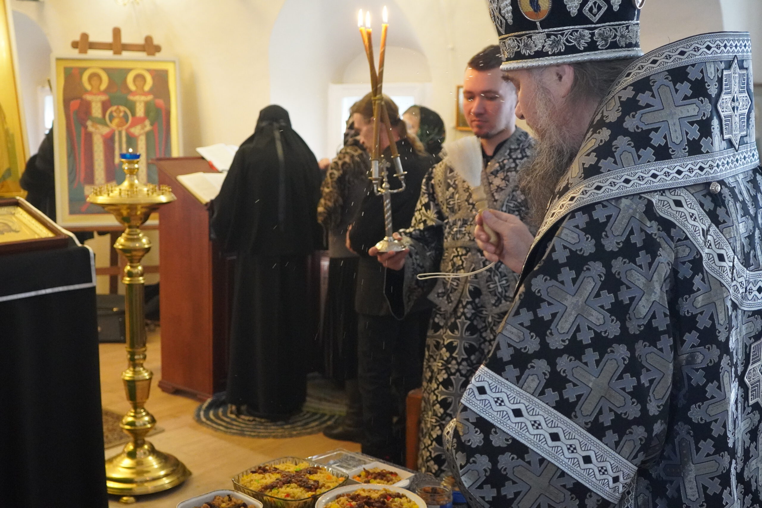 За Литургией Преосвященный Фотий освятил коливо, и произнёс проповедь:
