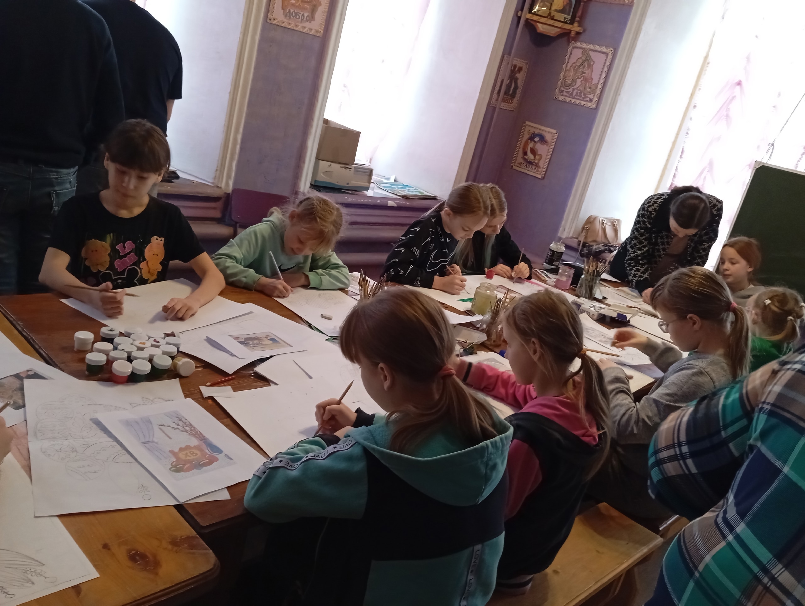 Ребята рисуют, слушают о православных традициях и Законе Божием, поют и музыкально развиваются.