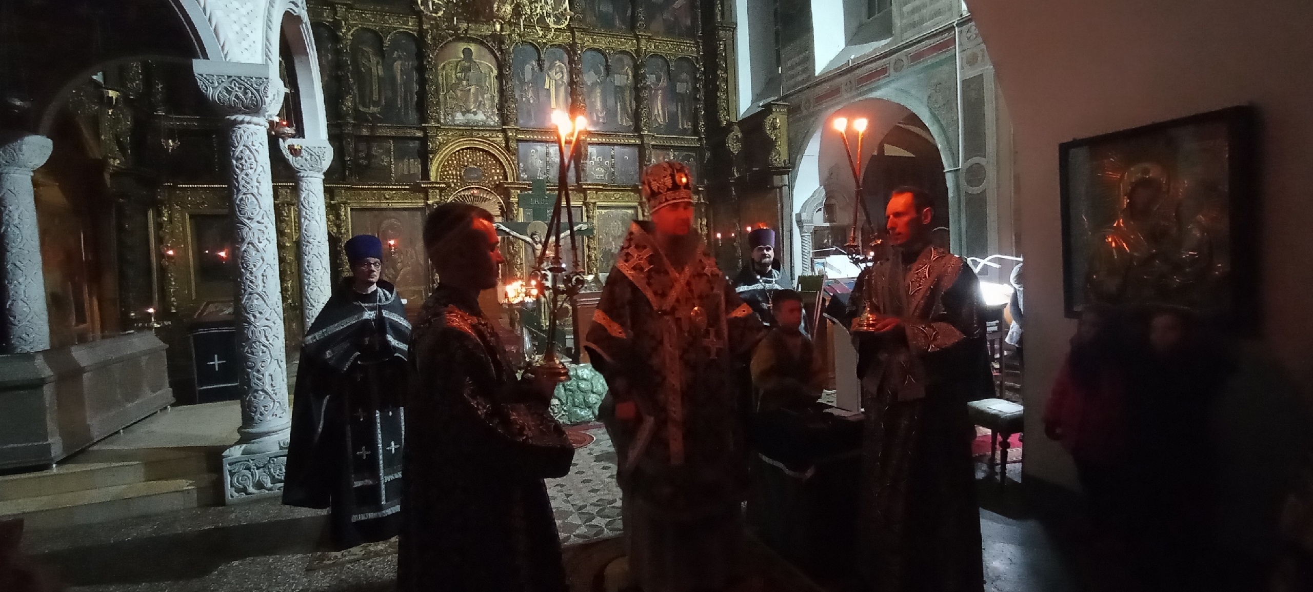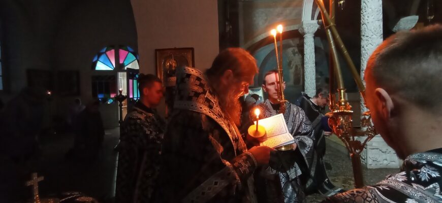 15 марта епископ Великоустюжский и Тотемский Фотий возглавил акафистное пение страстям Христовым в Кафедральном соборе святого праведного Прокопия Устюжского.