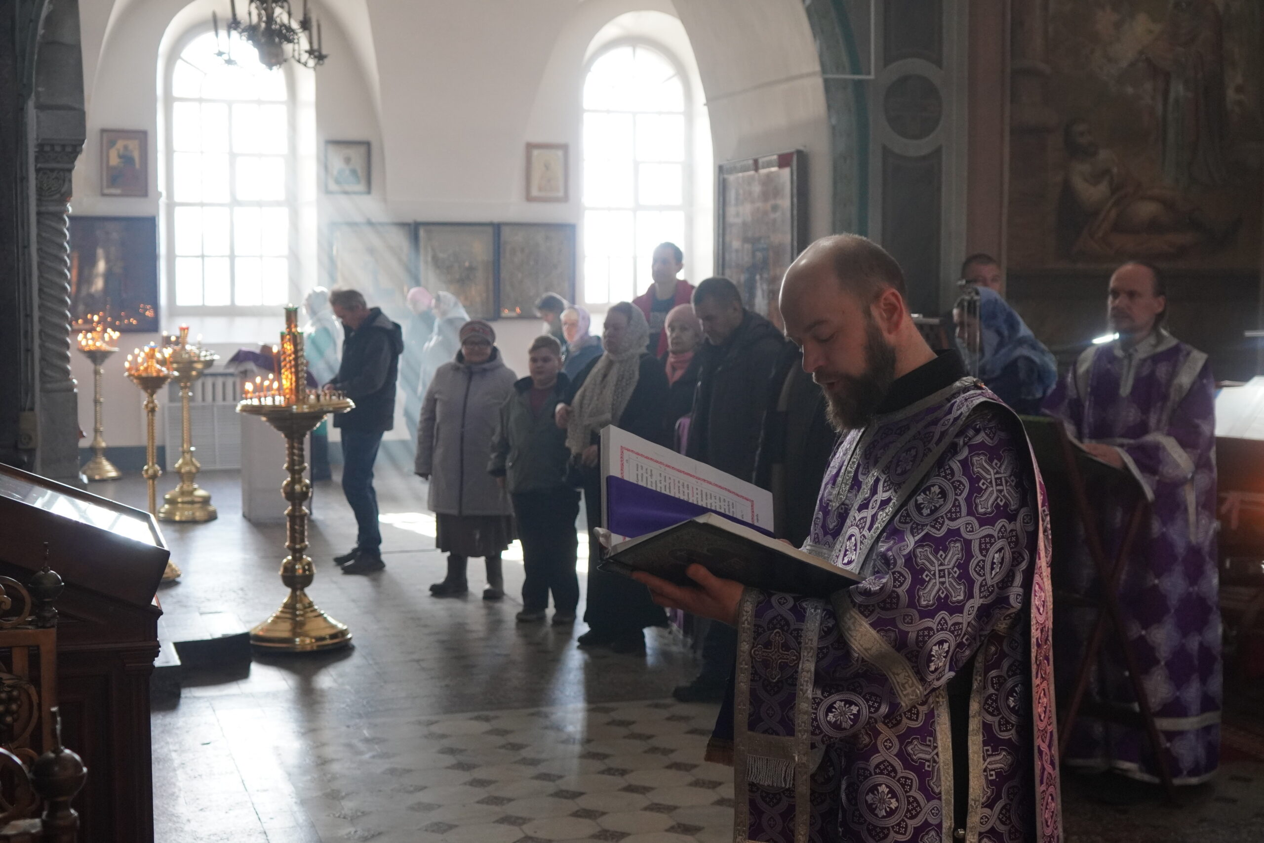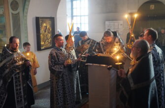 Владыке сослужили: иерей Вячеслав Бураков, ключарь Прокопьевского Собора, иерей Дмитрий Живаев, настоятель храма Симона Воломского в Полдарсе, а также диаконы Иоанн Холодилов и Василий Постников.