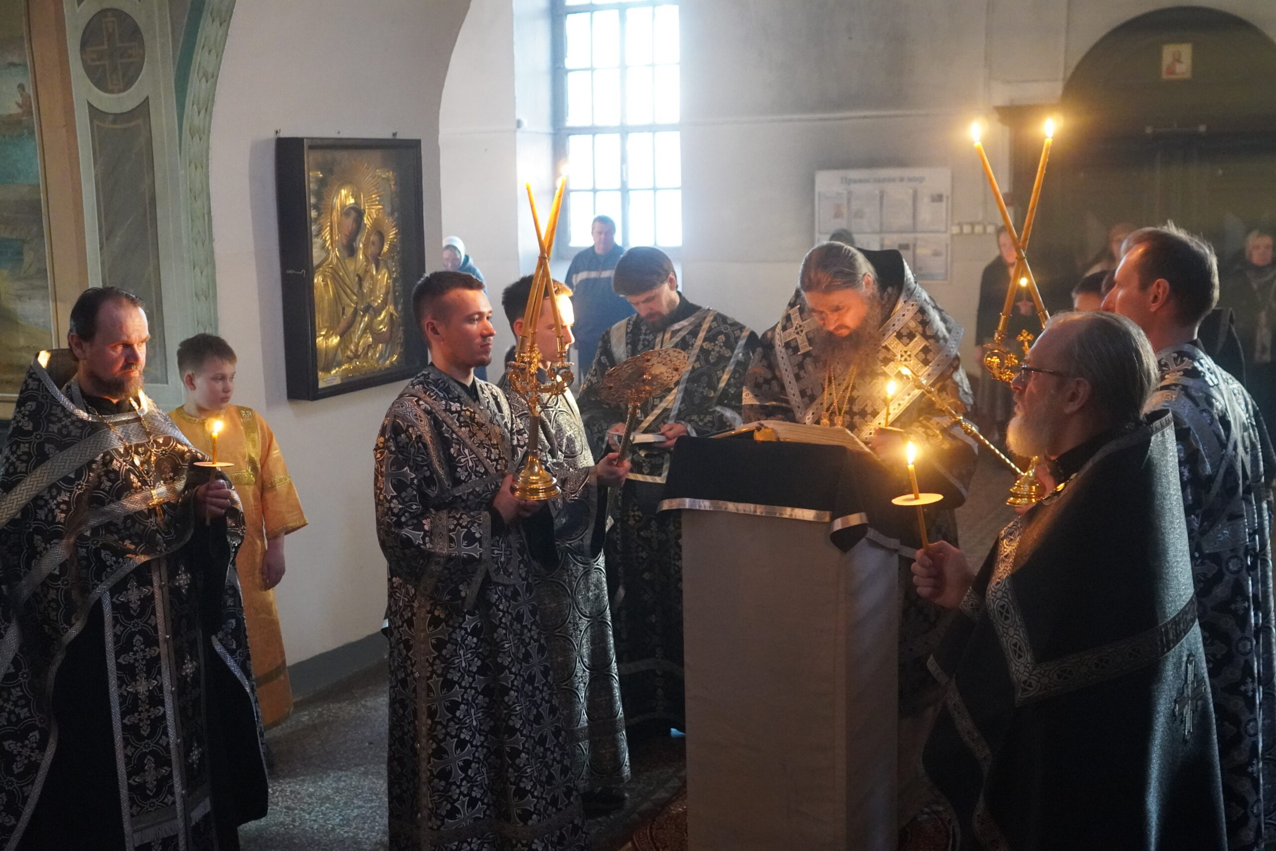 Владыке сослужили: иерей Вячеслав Бураков, ключарь Прокопьевского Собора, иерей Дмитрий Живаев, настоятель храма Симона Воломского в Полдарсе, а также диаконы Иоанн Холодилов и Василий Постников.