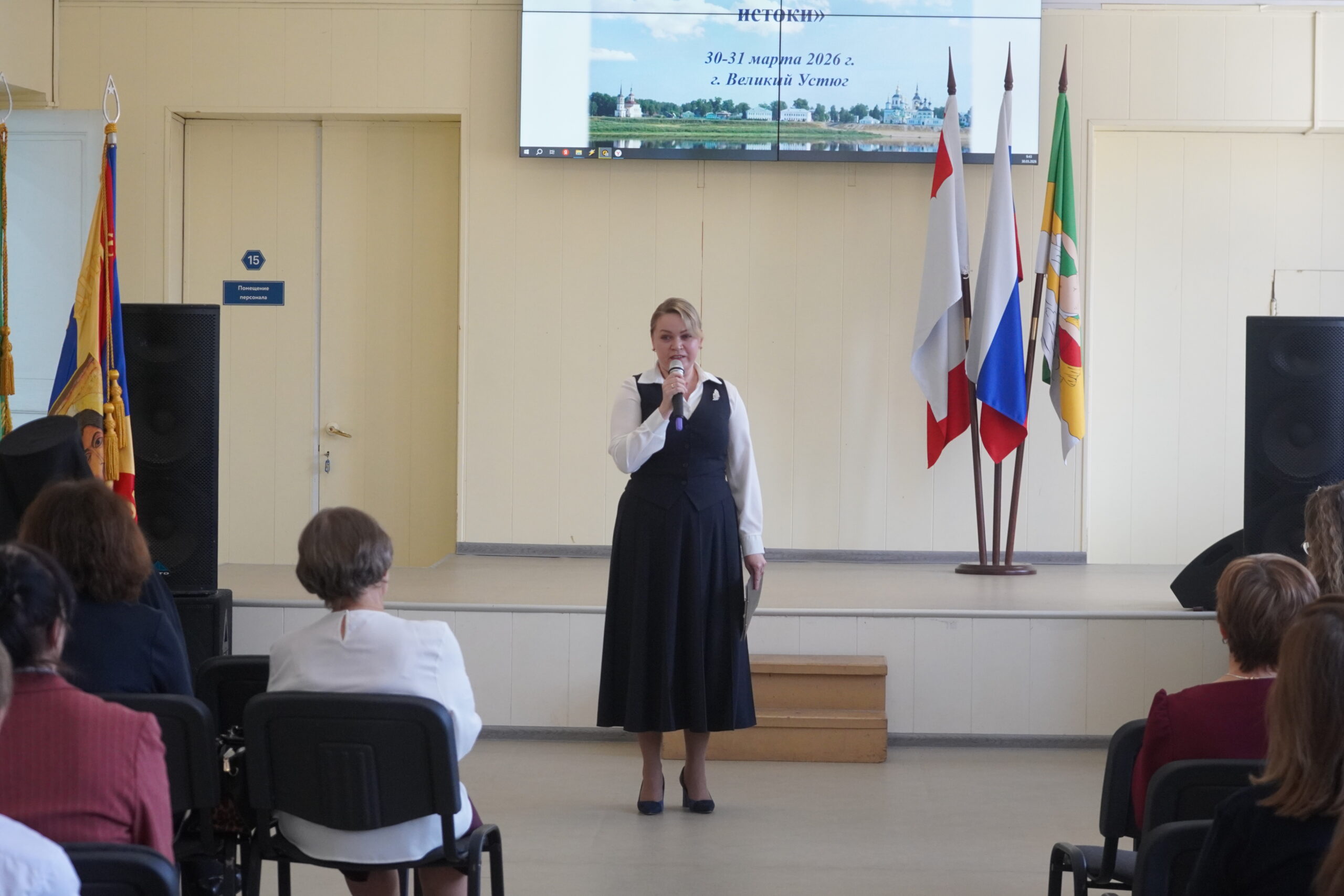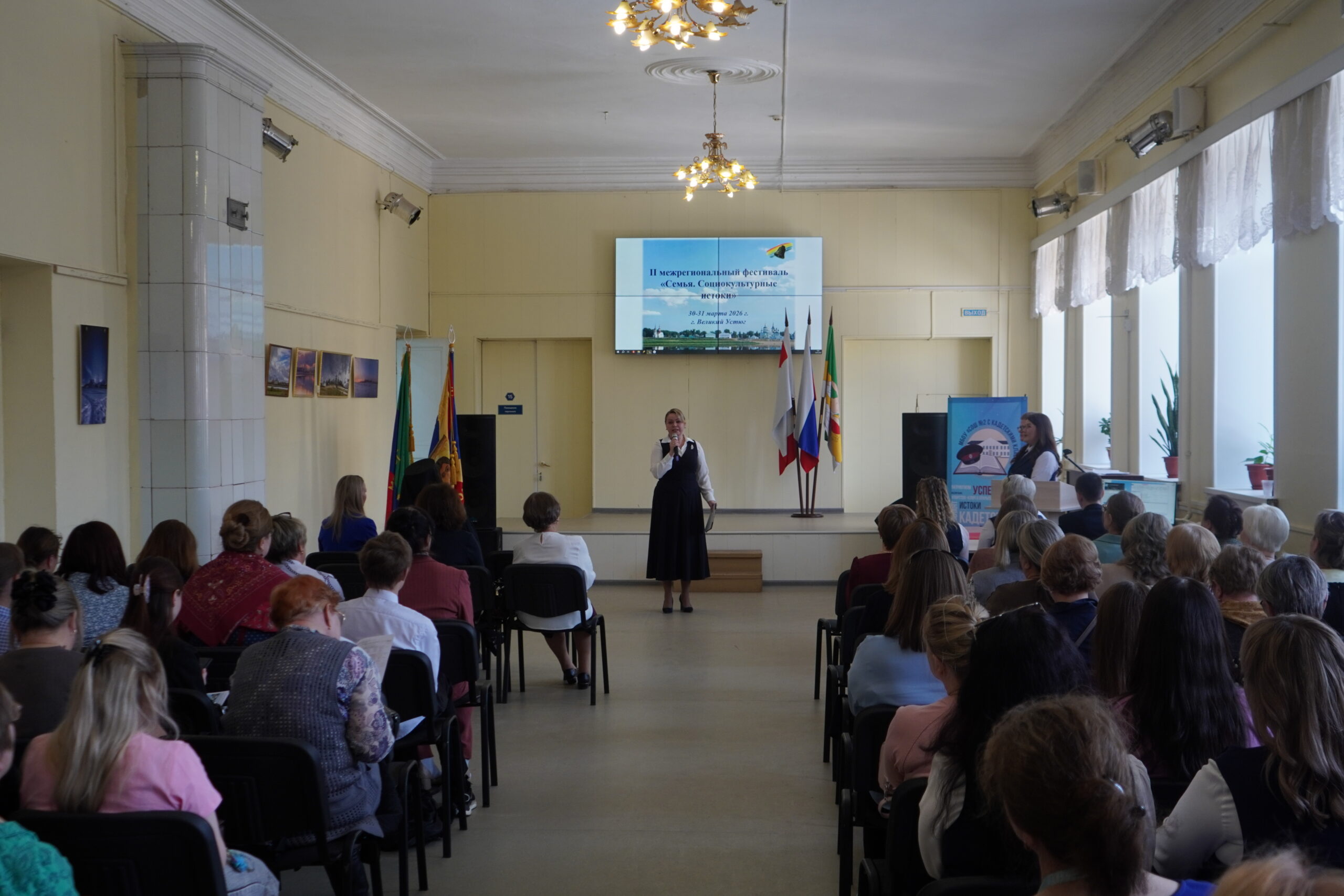 30 марта, в Великоустюгском гуманитарно-педагогическом колледже начал свою работу фестиваль «Семья. Социокультурные истоки». На этой теме организаторы фестиваля сосредотачиваются уже во второй раз. Проект «Социокультурные истоки» призван объединить усилия педагогов по воспитанию достойного гражданина России. В своих выступлениях участники фестиваля показывают работу своих образовательных учреждений с семьями учеников, общественностью местными и региональными властями. Так в 2026 году своим опытом поделились педагоги из Вологодской и Архангельской областей, а так же из республики Коми и Чувашской республики. Традиционно в работе фестиваля участвуют и представители духовенства. Так, епископ Великоустюжский и Тотемский Фотий выступил с пленарным докладом «Роль школы, семьи и православия в воспитании гражданина России».
