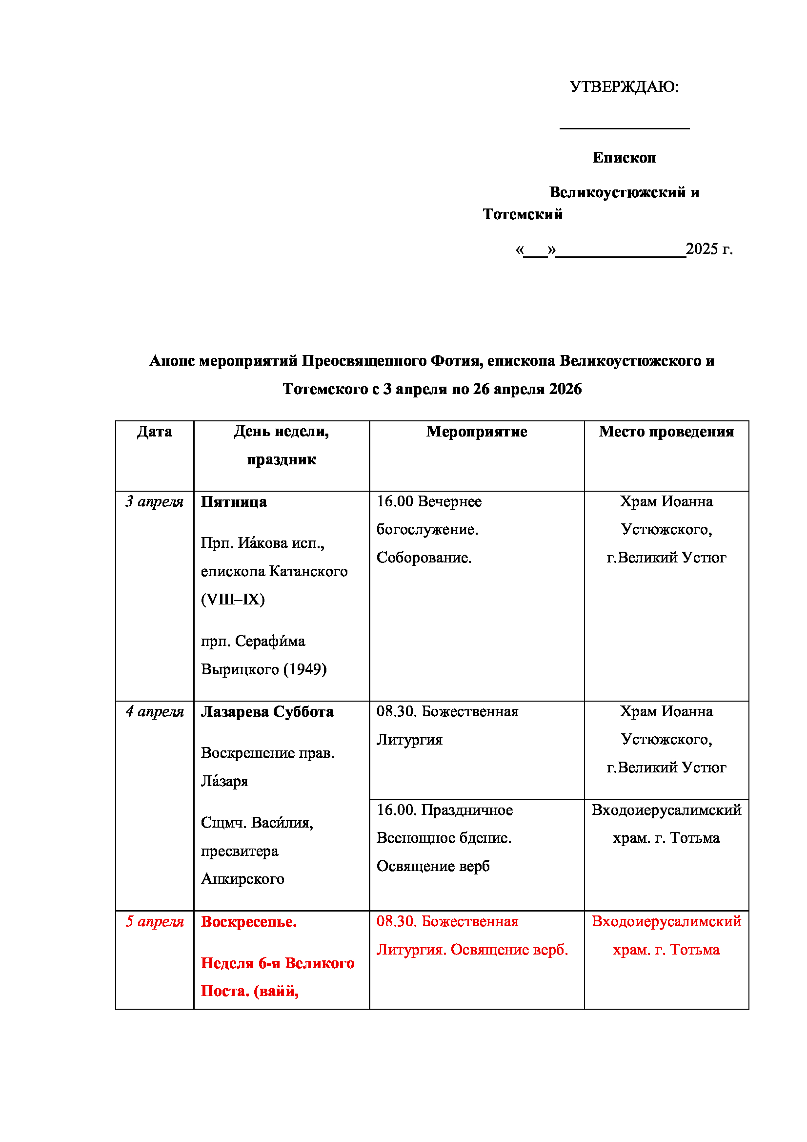 29 марта епископ Великоустюжский и Тотемский Фотий
