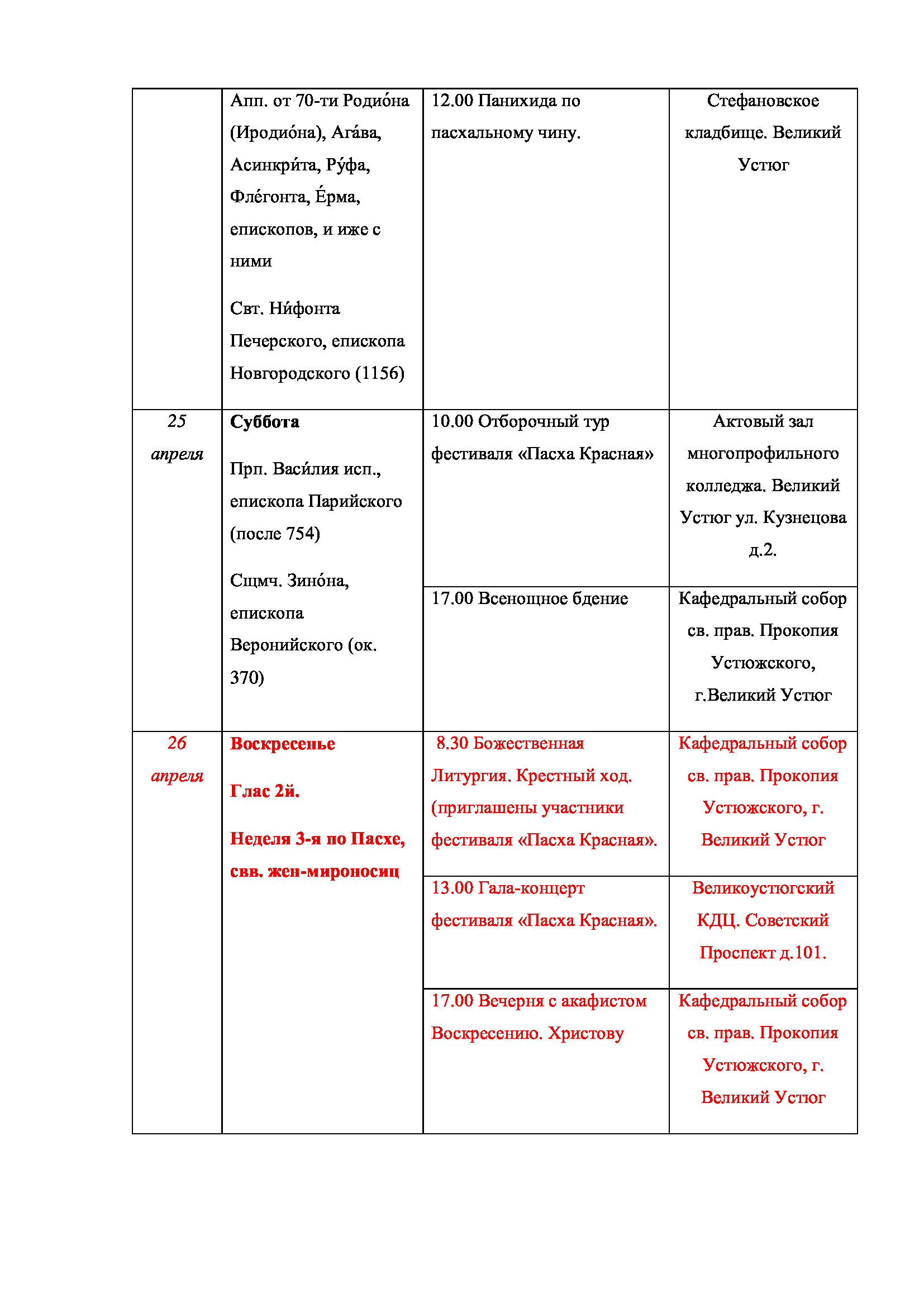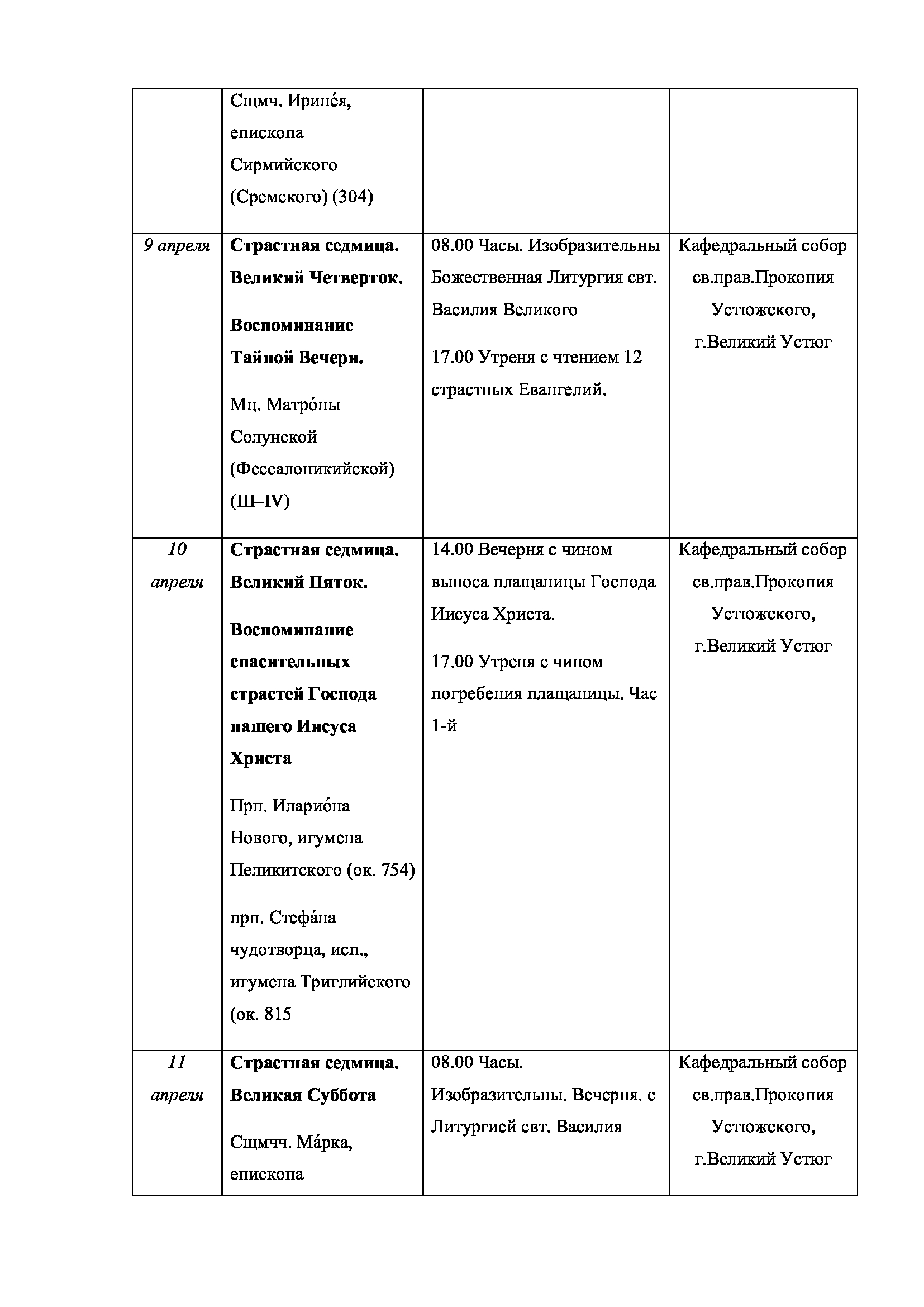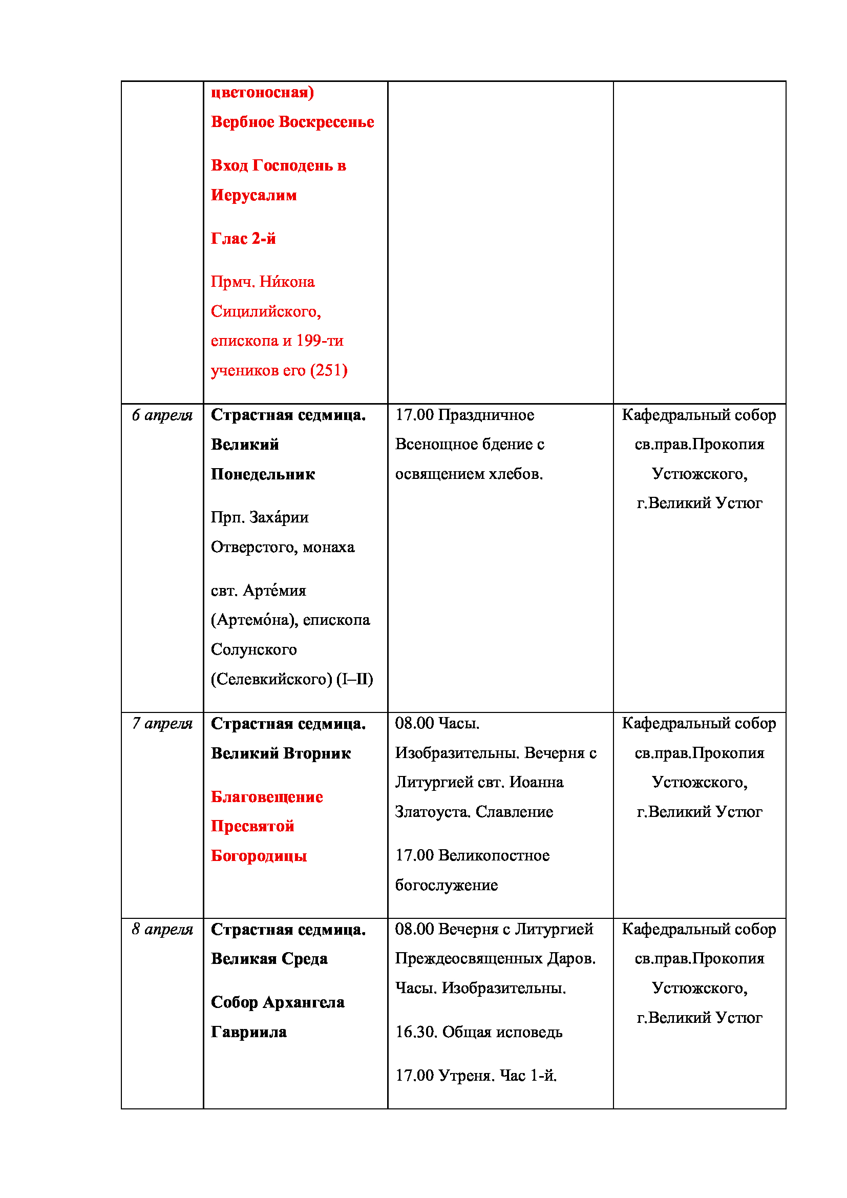 С 20 по 22 марта в Великом Устюге, по благословению
