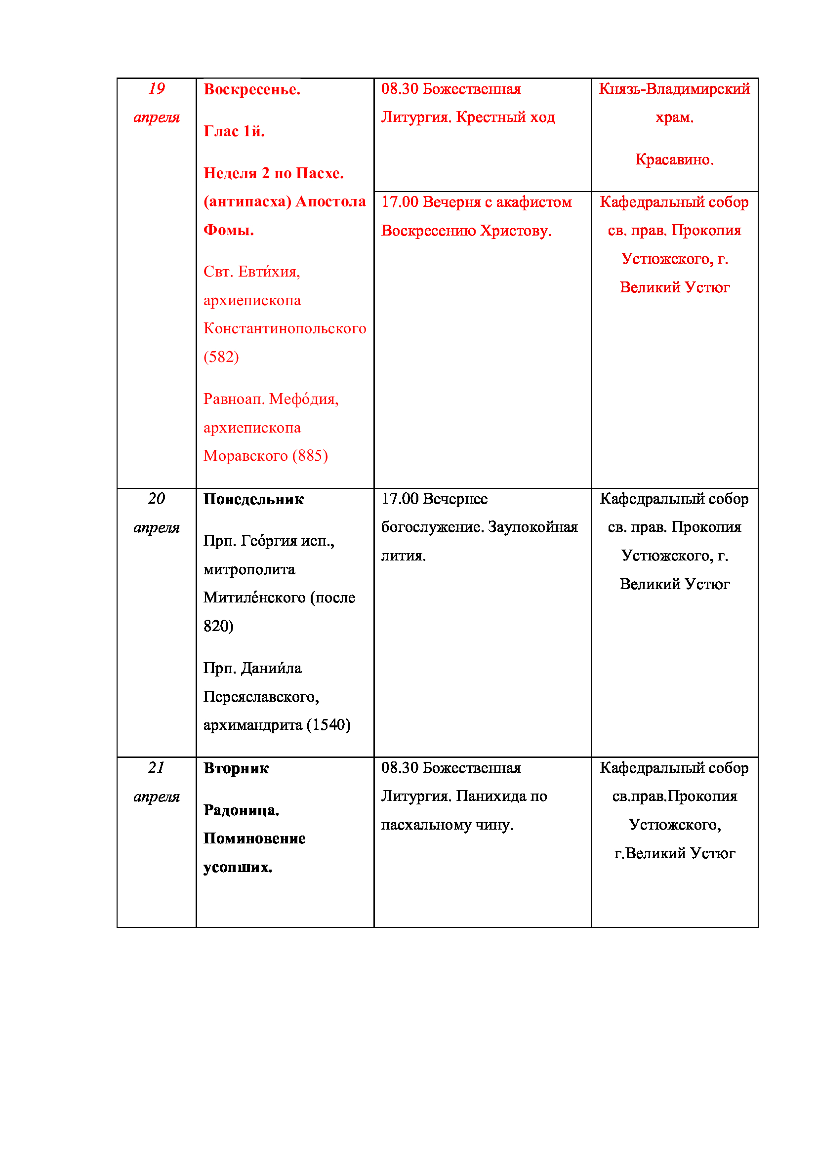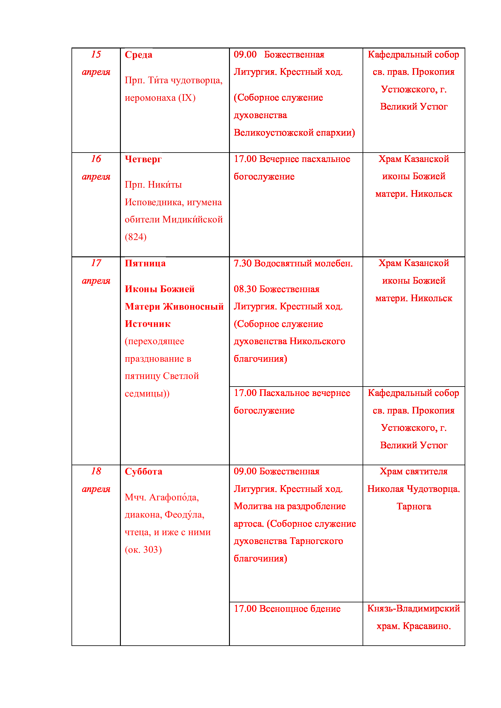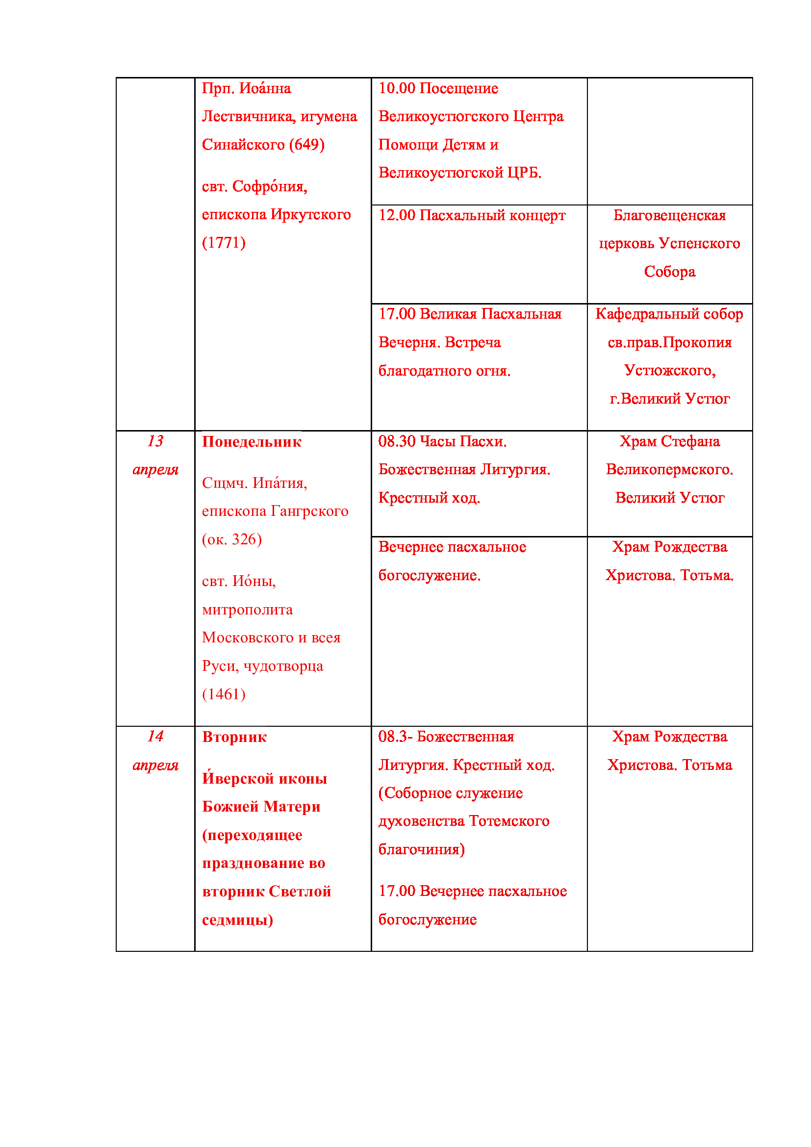 С 20 по 22 марта в Великом Устюге, по благословению