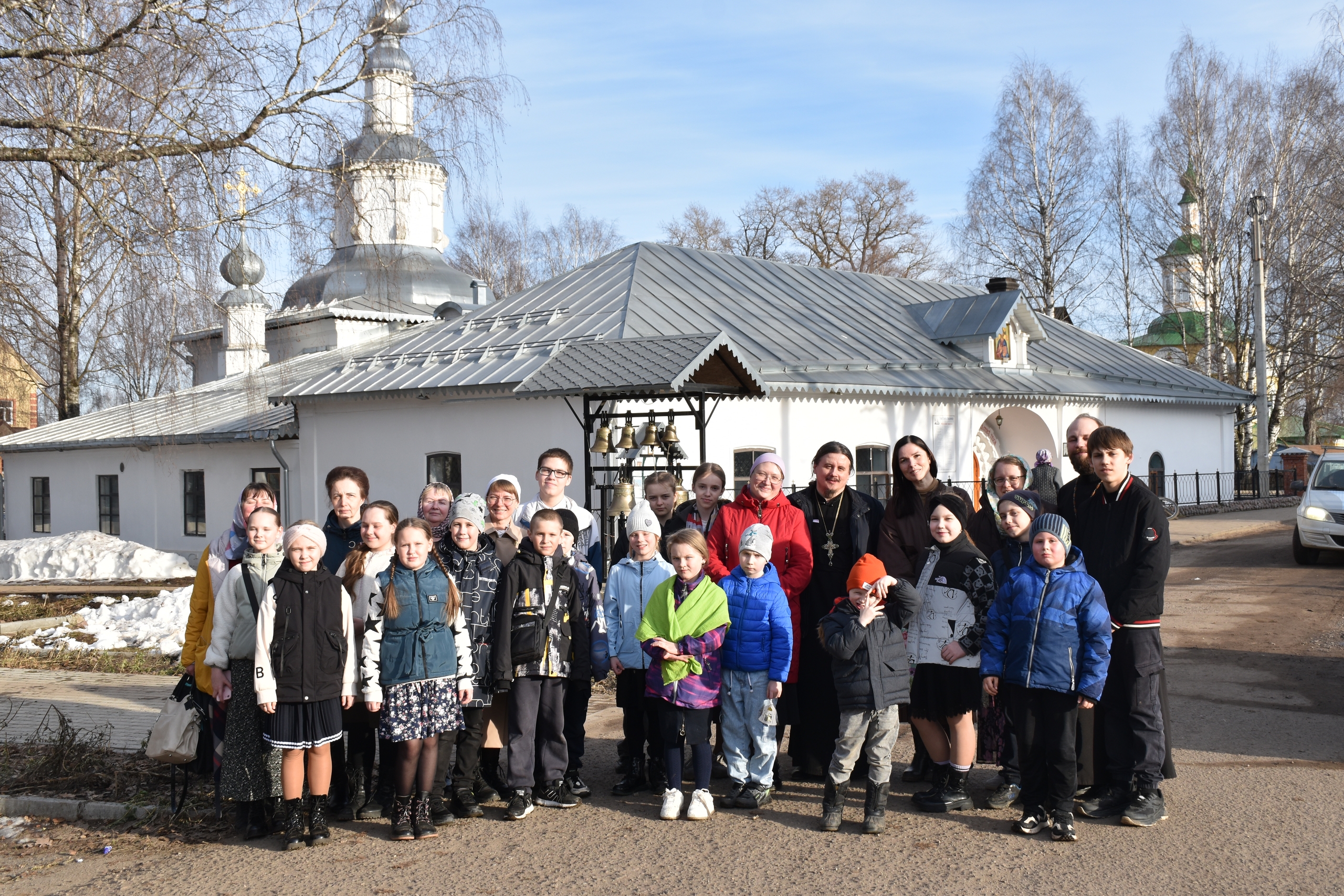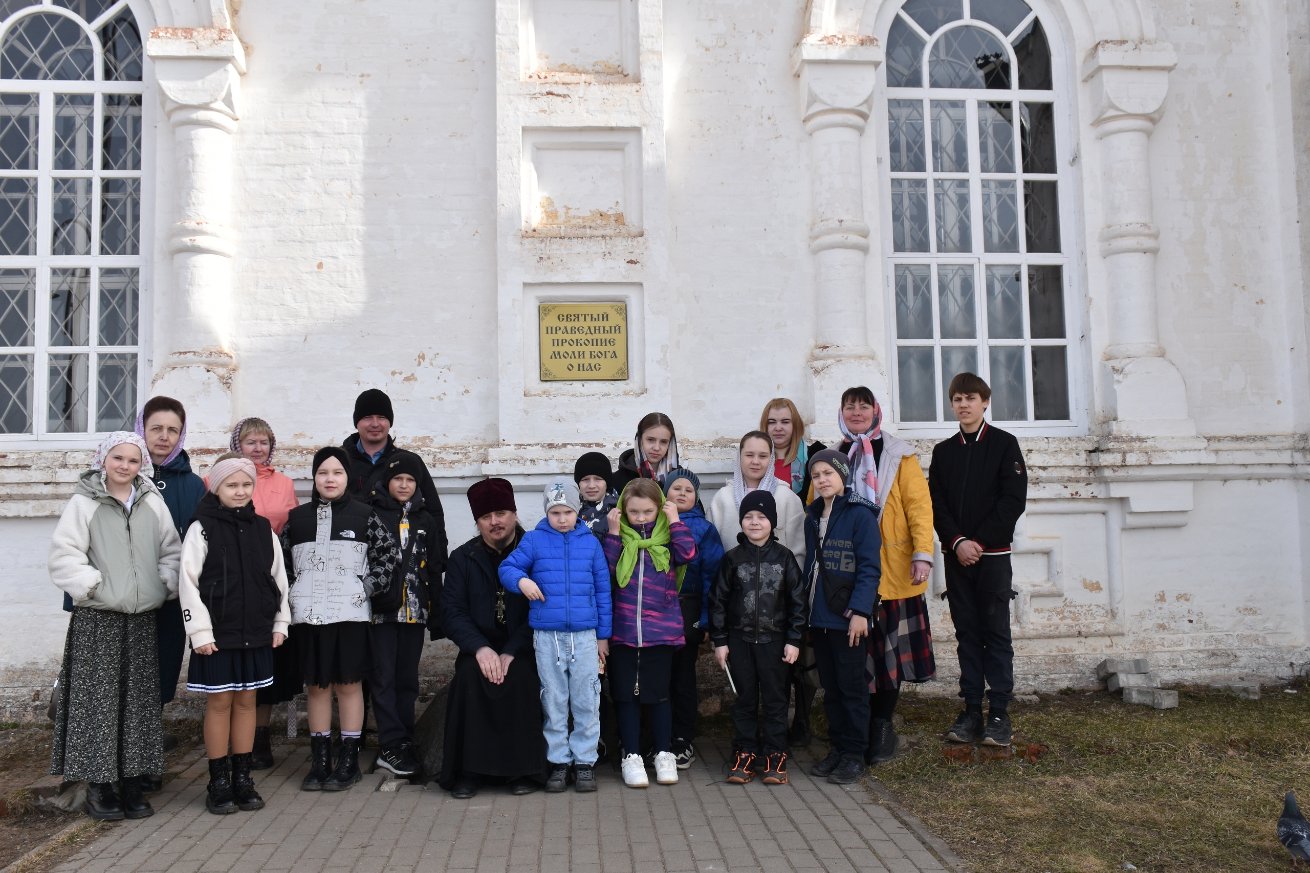 Ребята посетили храм прав. Иоанна Устюжского. Прослушали житие святого, приложились к раке с мощами и поднялись на небольшую колоколенку, где для них был проведён мастер — класс по колокольному звону Николаем звонарём собора прав. Прокопия. Дети с большим интересом звонили в маленькие колокола.