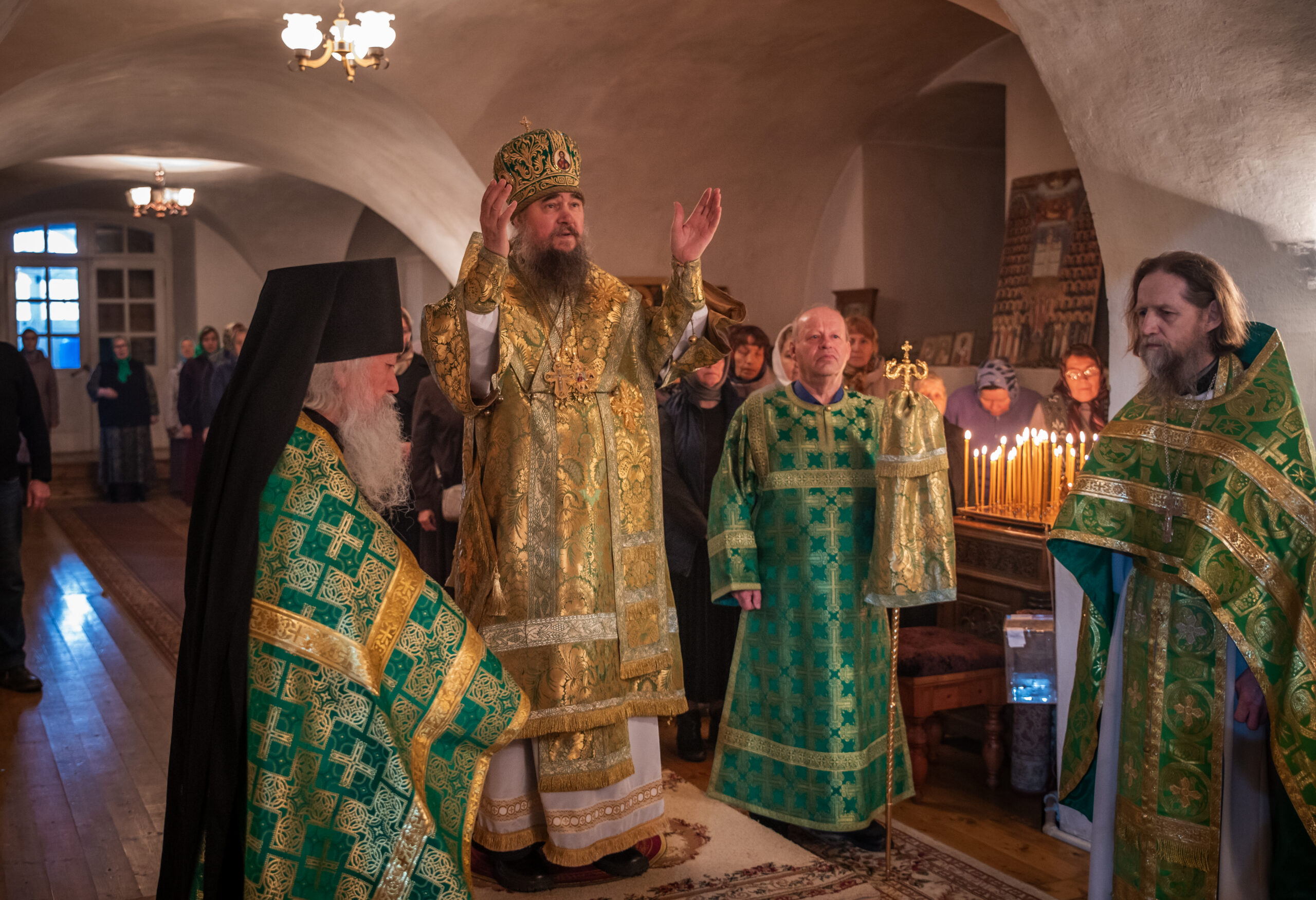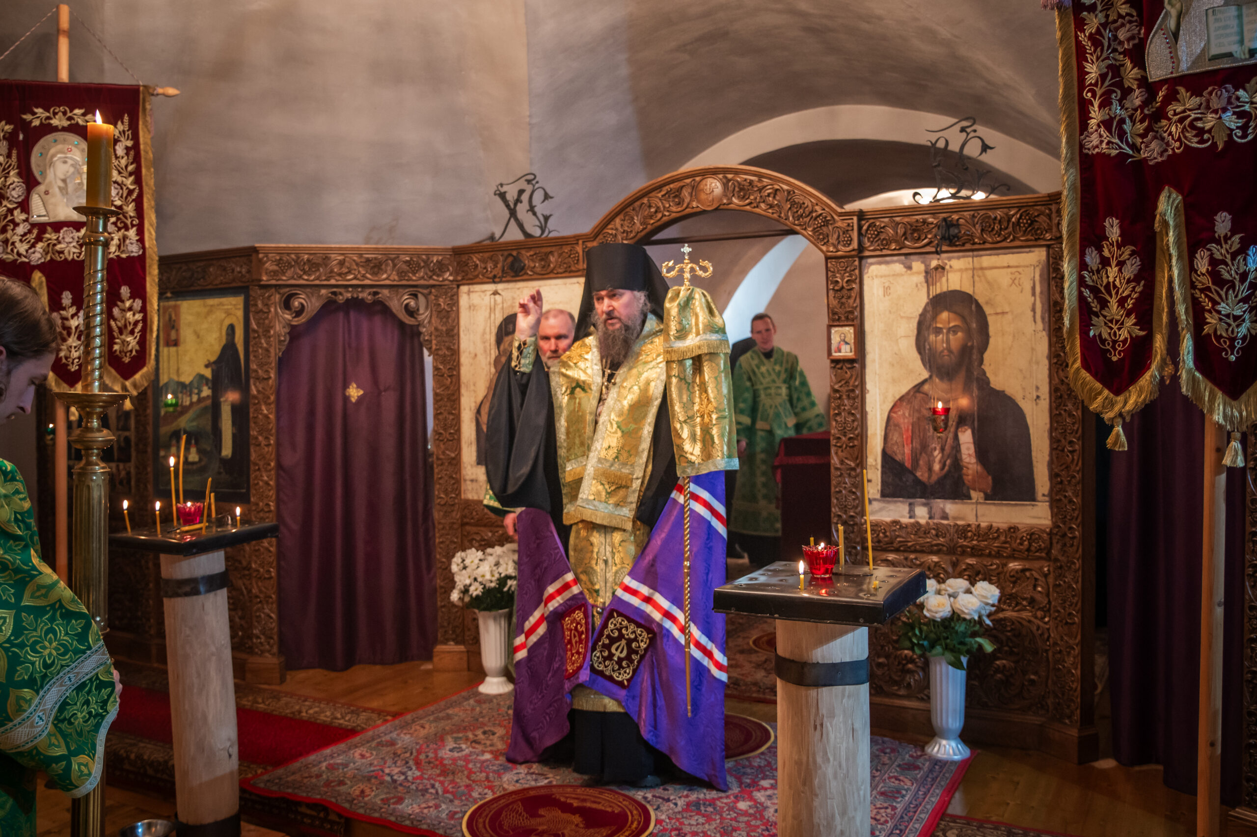 Владыке сослужили: настоятель Спасо-Суморина монастыря иеромонах Феодосий(Писарев), а также клирик Спасо-Суморина монастыря иерей Николай Денисов.