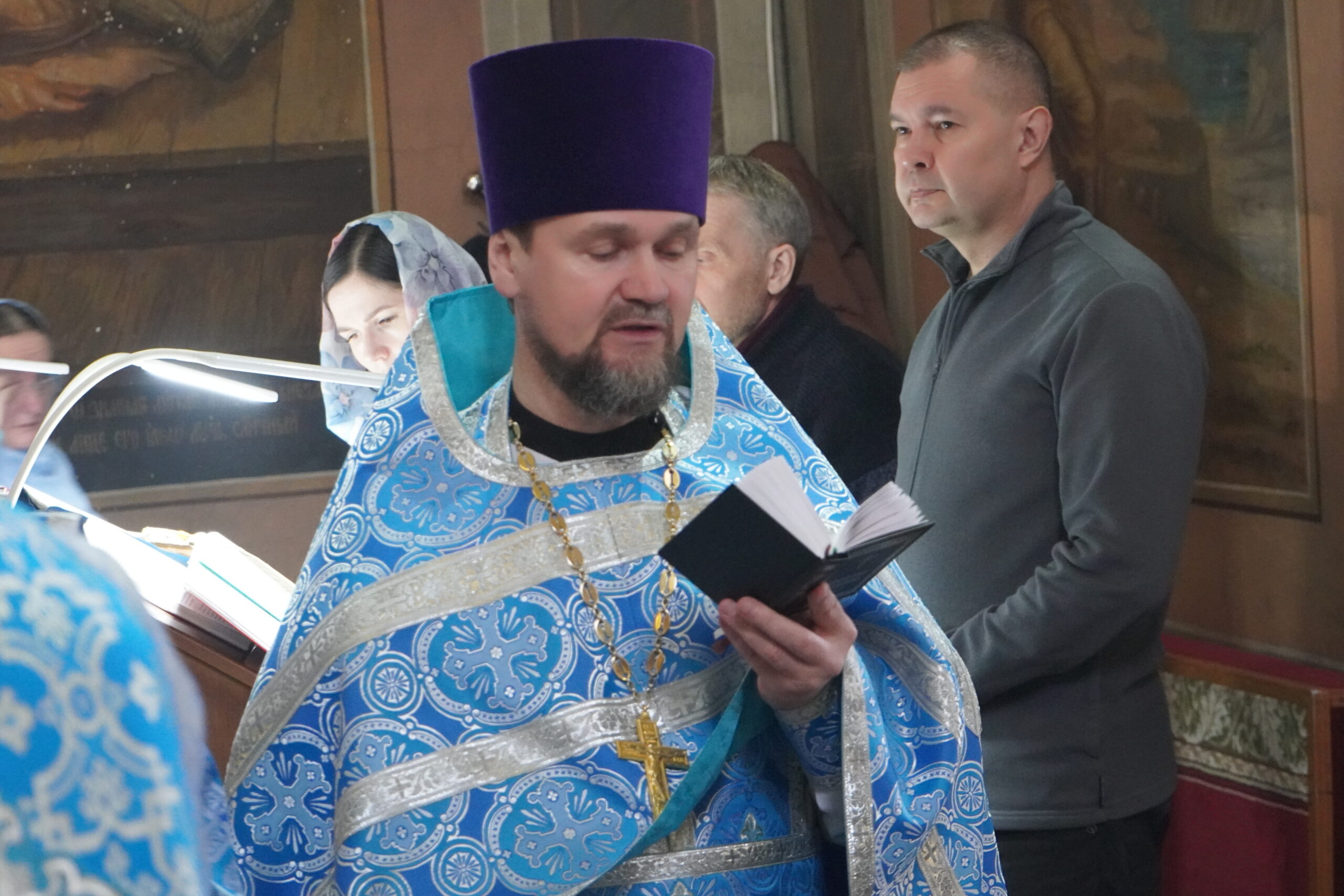 Владыке сослужили: иерей Вячеслав Бураков, ключарь Прокопьевского Собора, а также диаконы Иоанн Холодилов и Александр Гайкин.