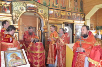 Его Преосвященству сослужили: ключарь Прокопьевского собора иерей Вячеслав Бураков, а так же диаконы Иван Холодилов и Александр Гайкин.