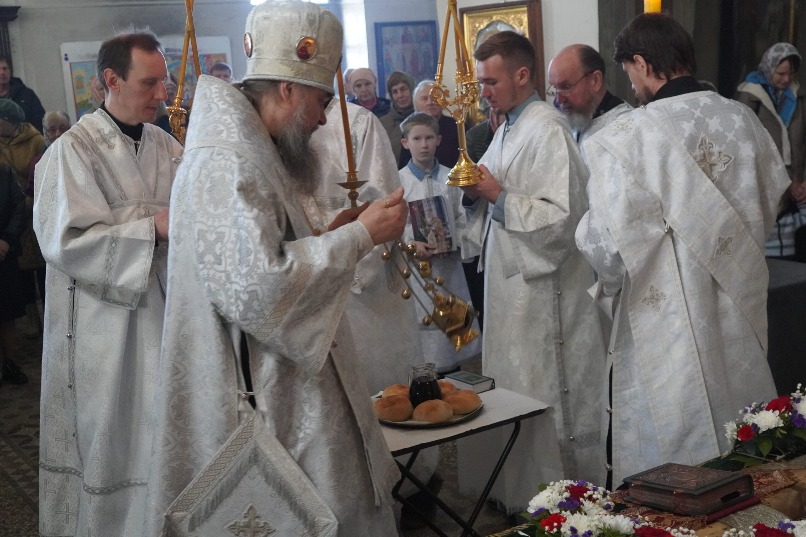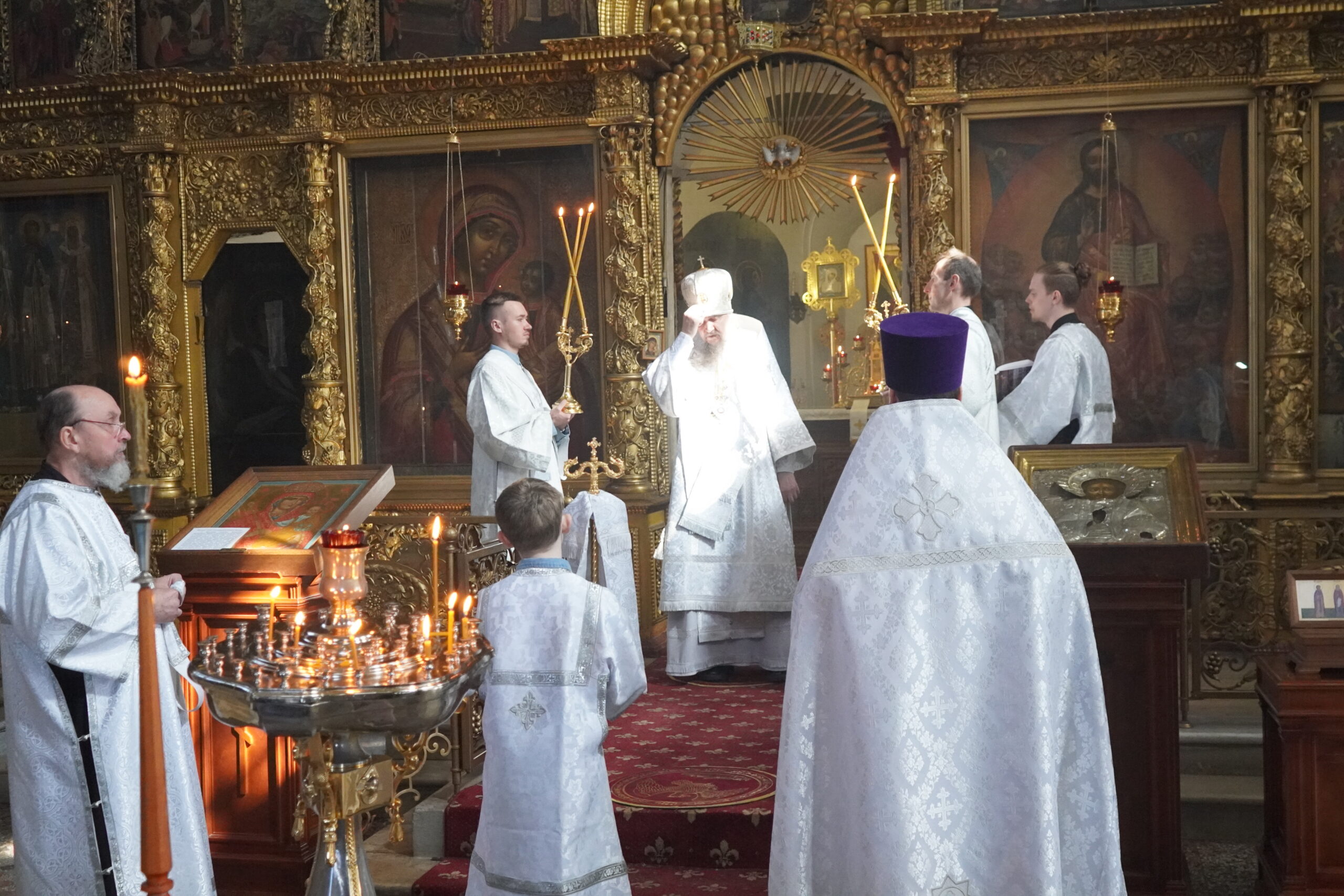 Владыке сослужили иерей Вячеслав Бураков, ключарь Прокопьевского Собора, а также диаконы Иван Холодилов.и Александр Гайкин