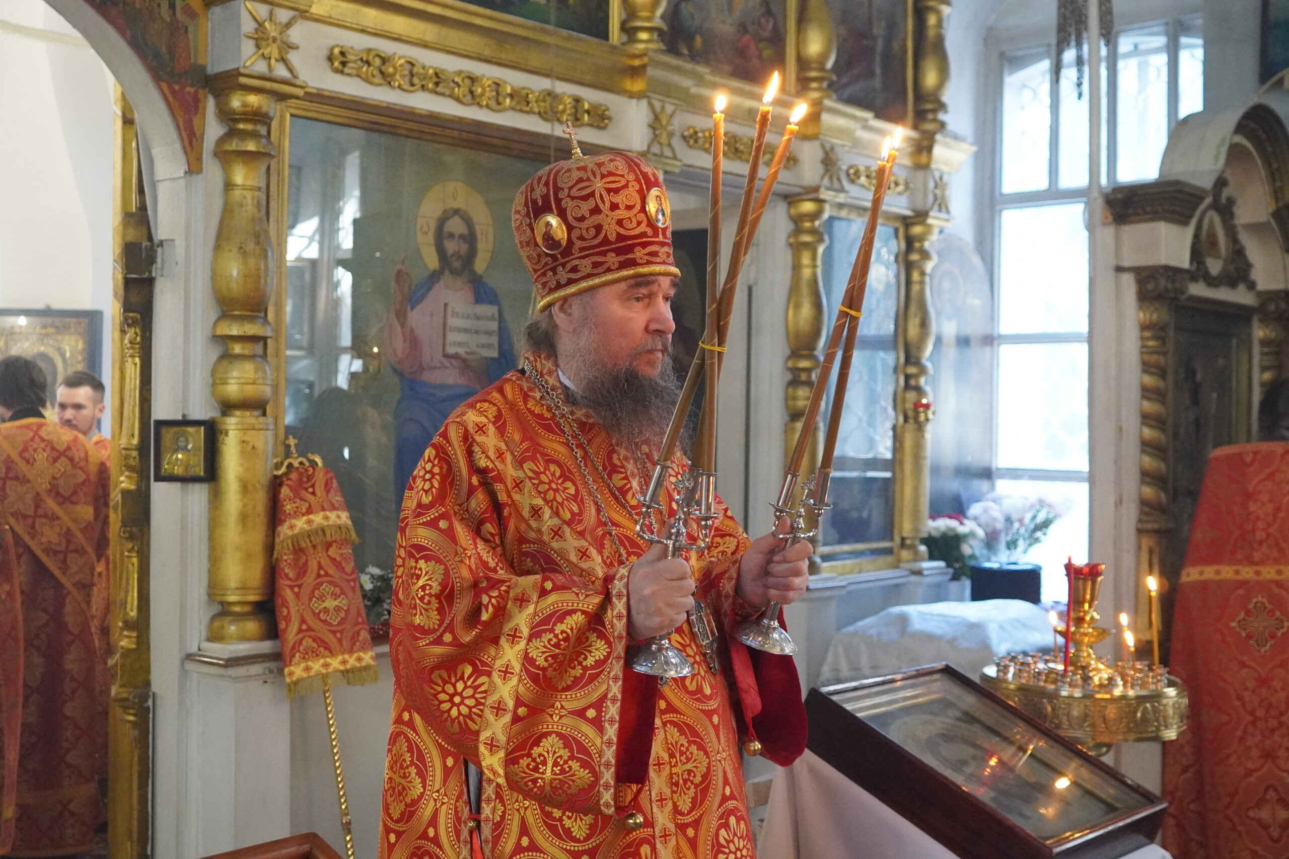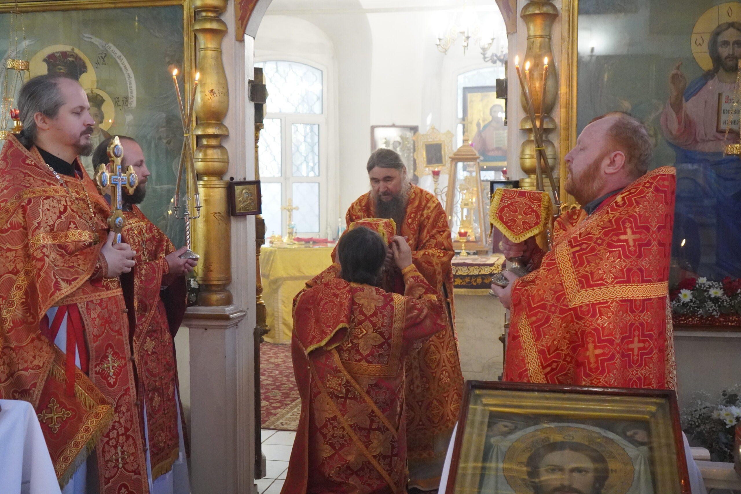Владыке сослужили: протоиерей Дмитрий Фомин, настоятель Стефановского Храма, иерей Евгений Долгополов, клирик Стефановского храма, а также иерей Фёдор Фомин, настоятель Георгиевского храма.