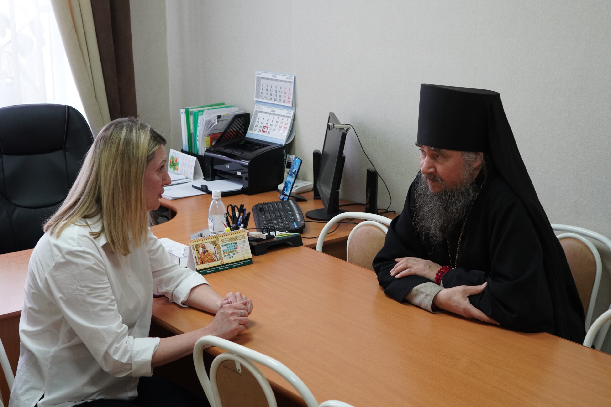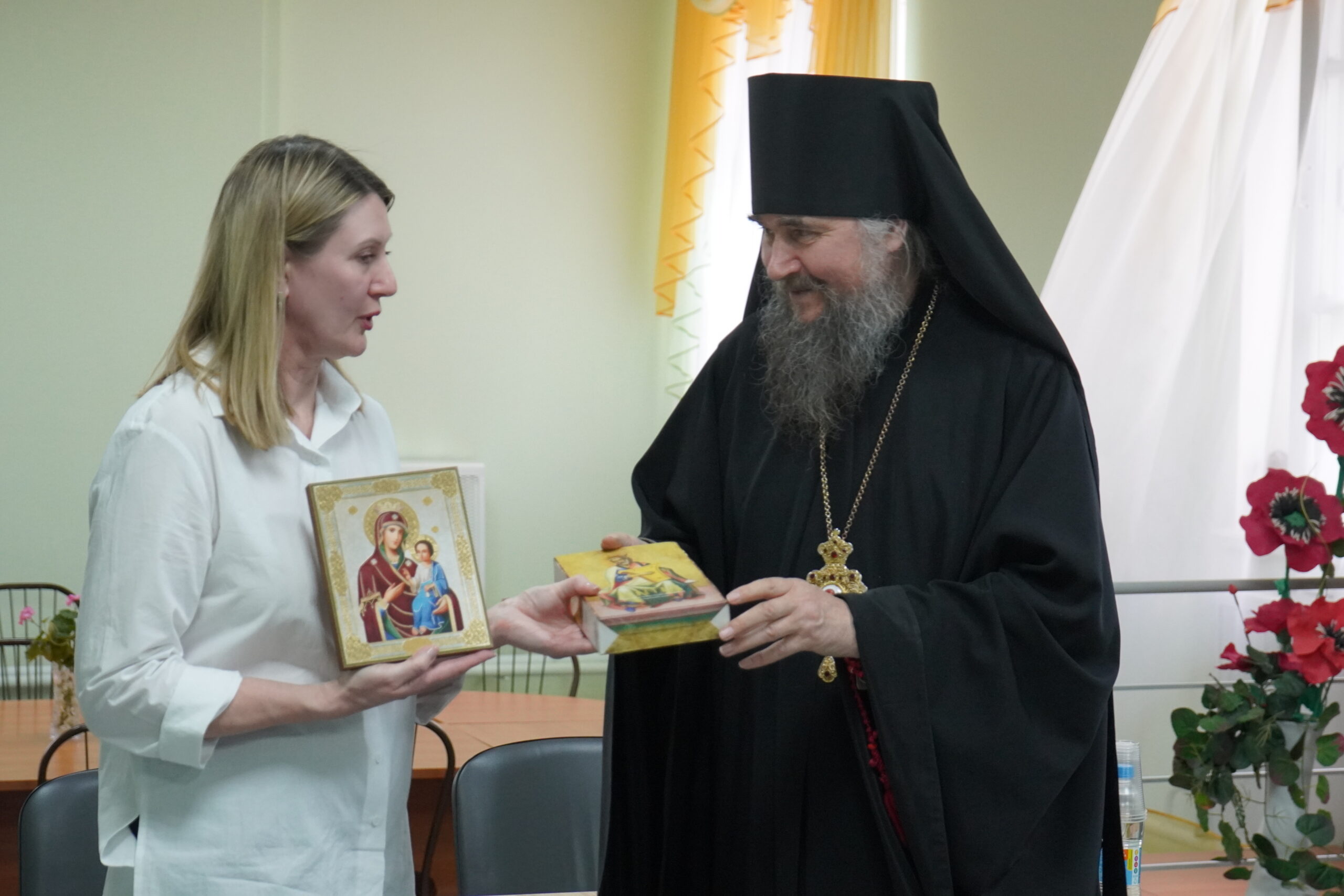 После подписания договора, Владыка передал подарки и ответил на вопросы работников центра, а также получил ответный подарок от КСЦОН.