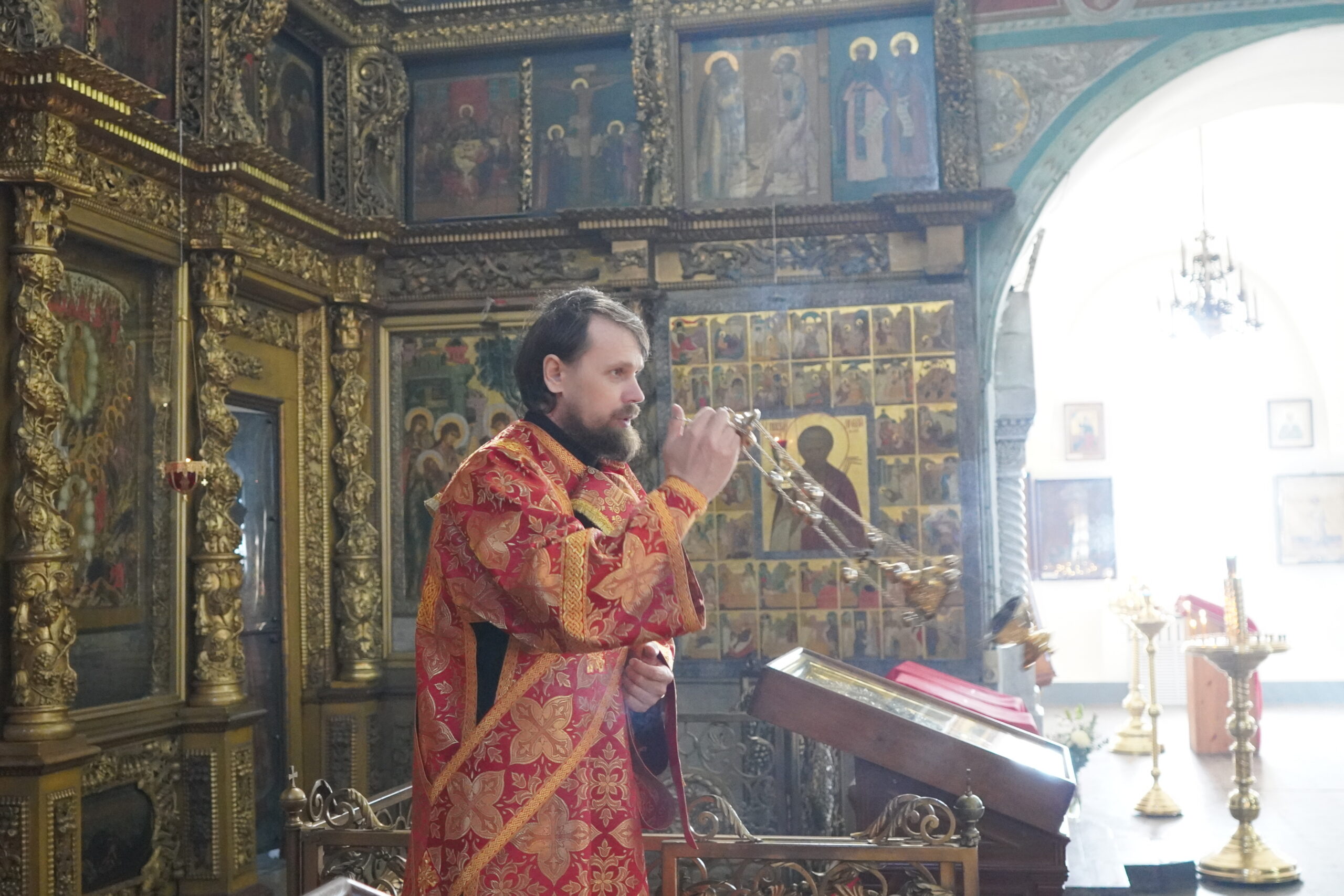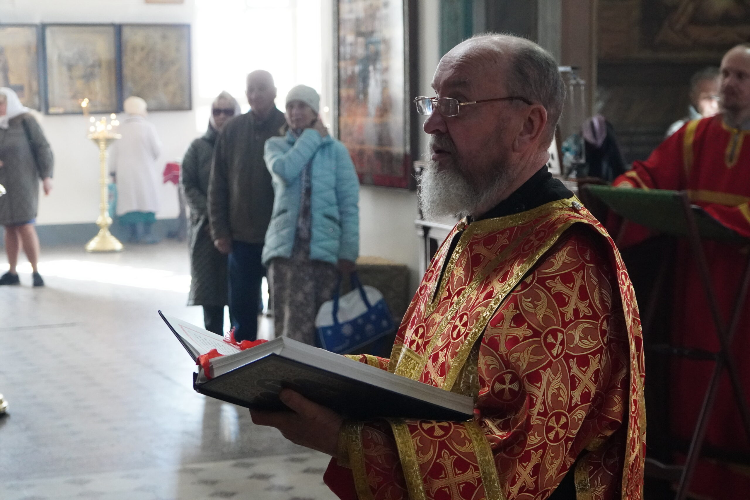 Владыке сослужили: ключарь Прокопьевского собора иерей Вячеслав Бураков, а также диаконы Иван Холодилов и Александр Гайкин.