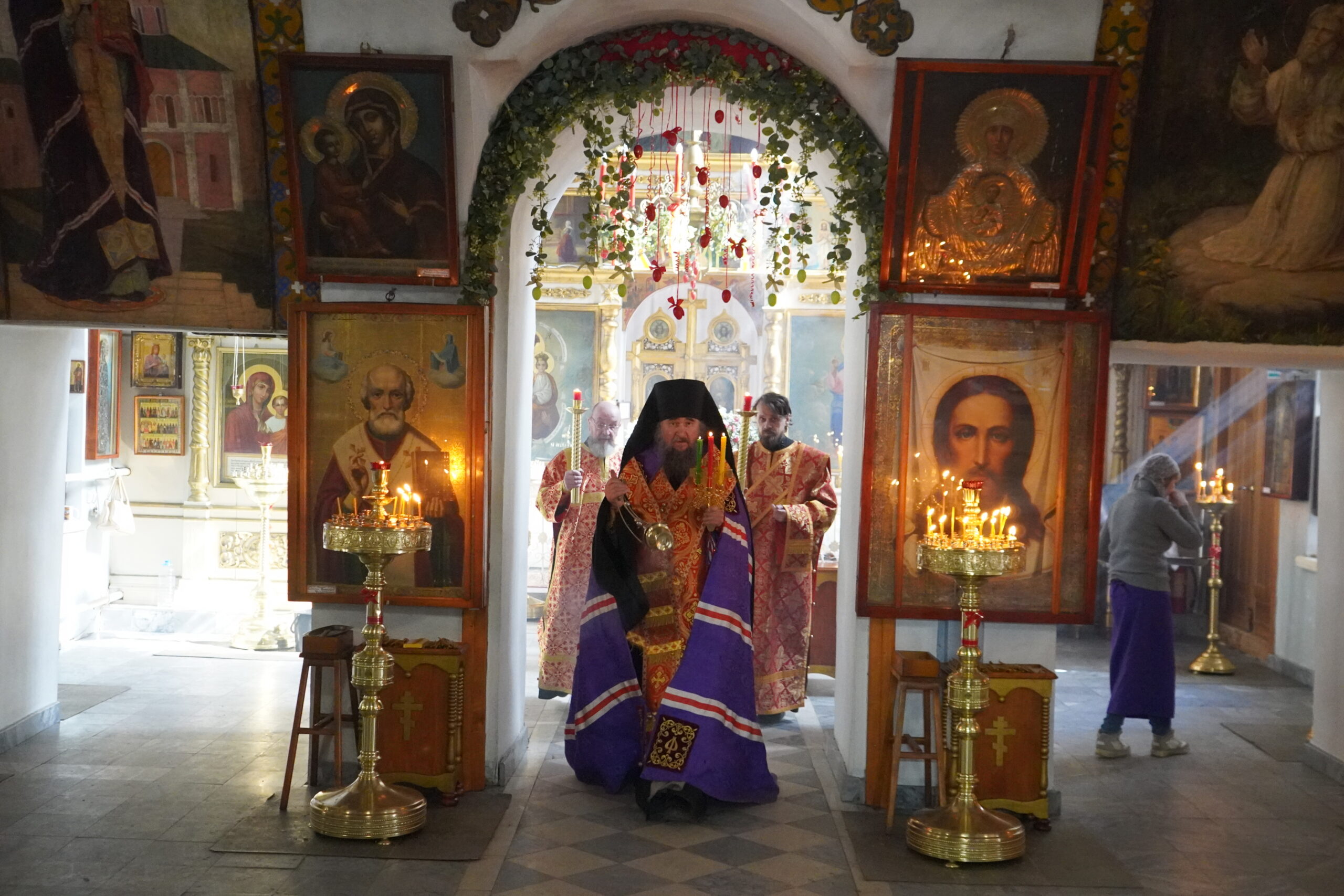 Владыке сослужили: протоиерей Дмитрий Фомин, настоятель Стефановского храма, иерей Евгений Долгополов, клирик Стефановского храма, иерей Вячеслав Бураков, ключарь Прокопьевского собора, иерей Фёдор Фомин, настоятель Георгиевского храма, а также диаконы Иван Холодилов и Александр Гайкин,