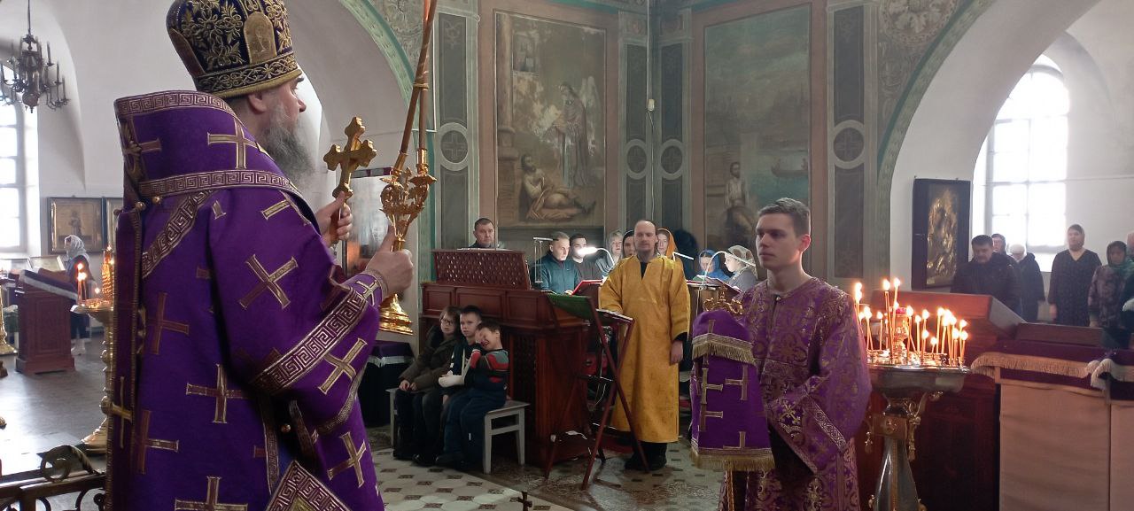 В пятницу, 7 марта епископ Великоустюжский и Тотемский Фотий молился за Великопостным богослужением и возглавил Литургию Преждеосвященных Даров в Спасо-Суморином