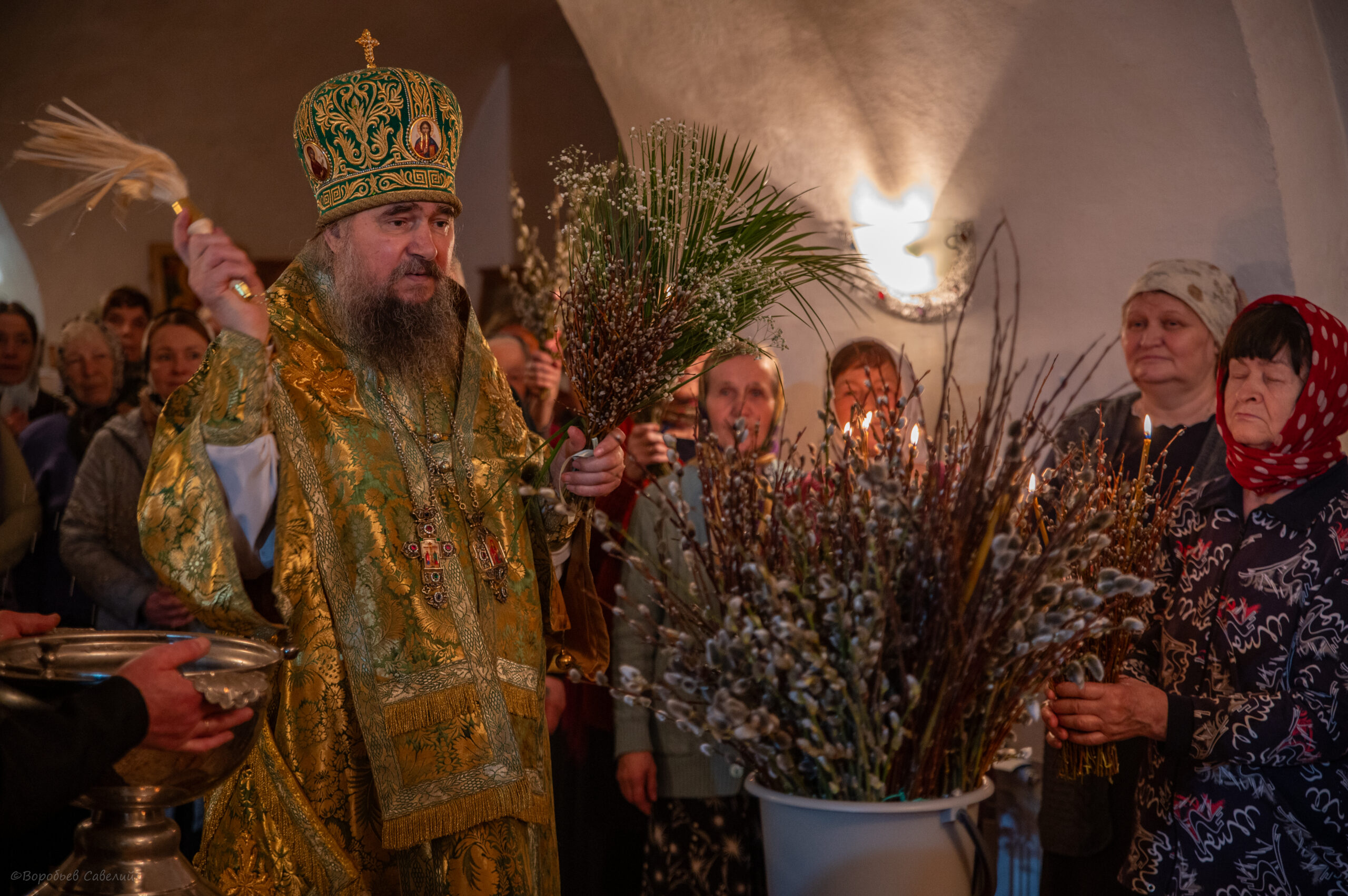 13 апреля, в Неделю 6-ю Ваий, Вербное воскресенье епископ Великоустюжский и Тотемский Фотий совершил Божественную Литургию в Спасо-Суморином монастыре города Тотьмы.