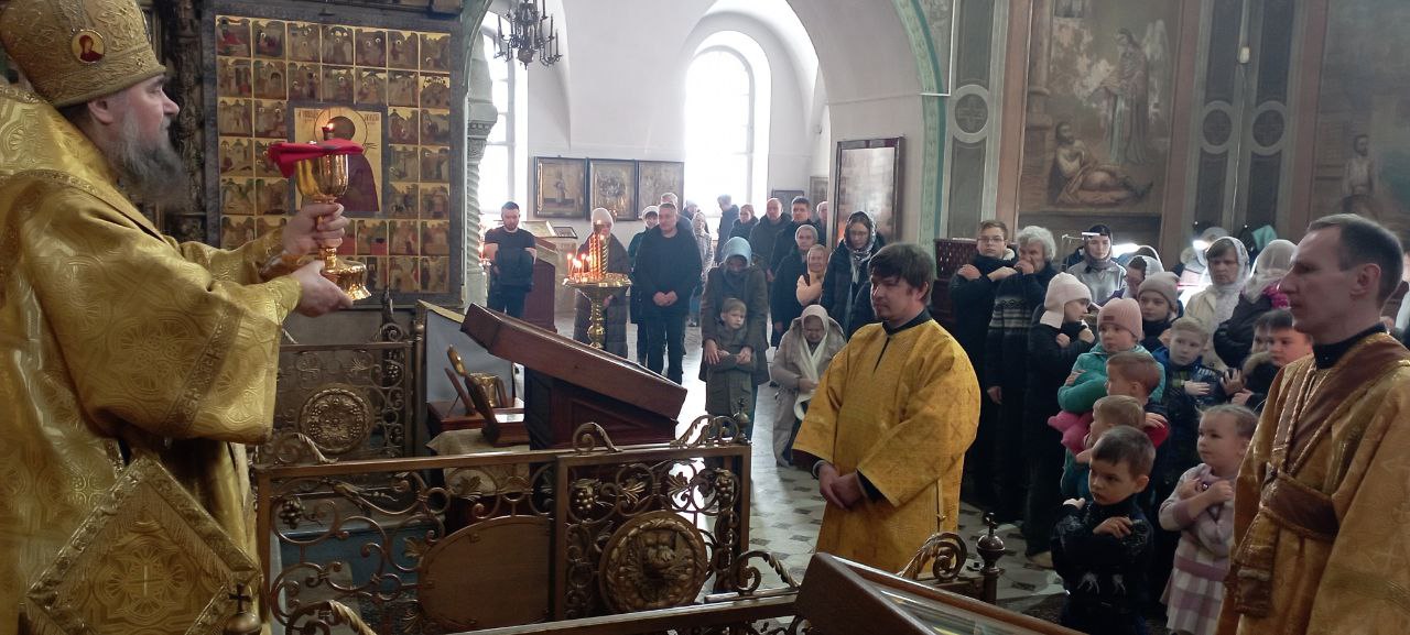 В среду 5 марта епископ Великоустюжский и Тотемский Фотий молился за Великопостным богослужением и возглавил первую в 2025 году Литургию Преждеосвященных Даров.