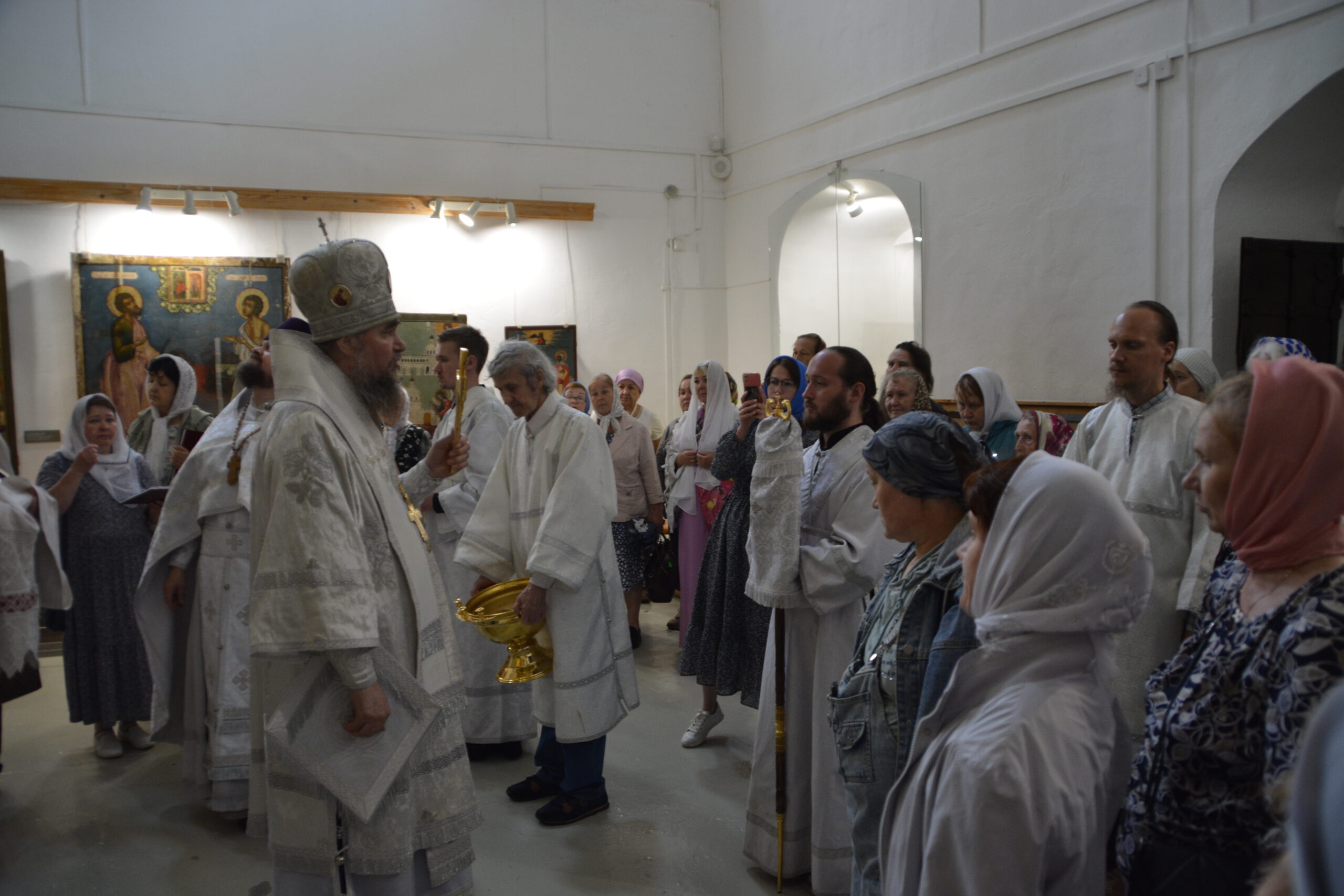 Вечером 16 июня епископ Великоустюжский и Тотемский Фотий совершил вечернее богослужение с акафистом Иисусу Сладчайшему. Владыке сослужили руководитель