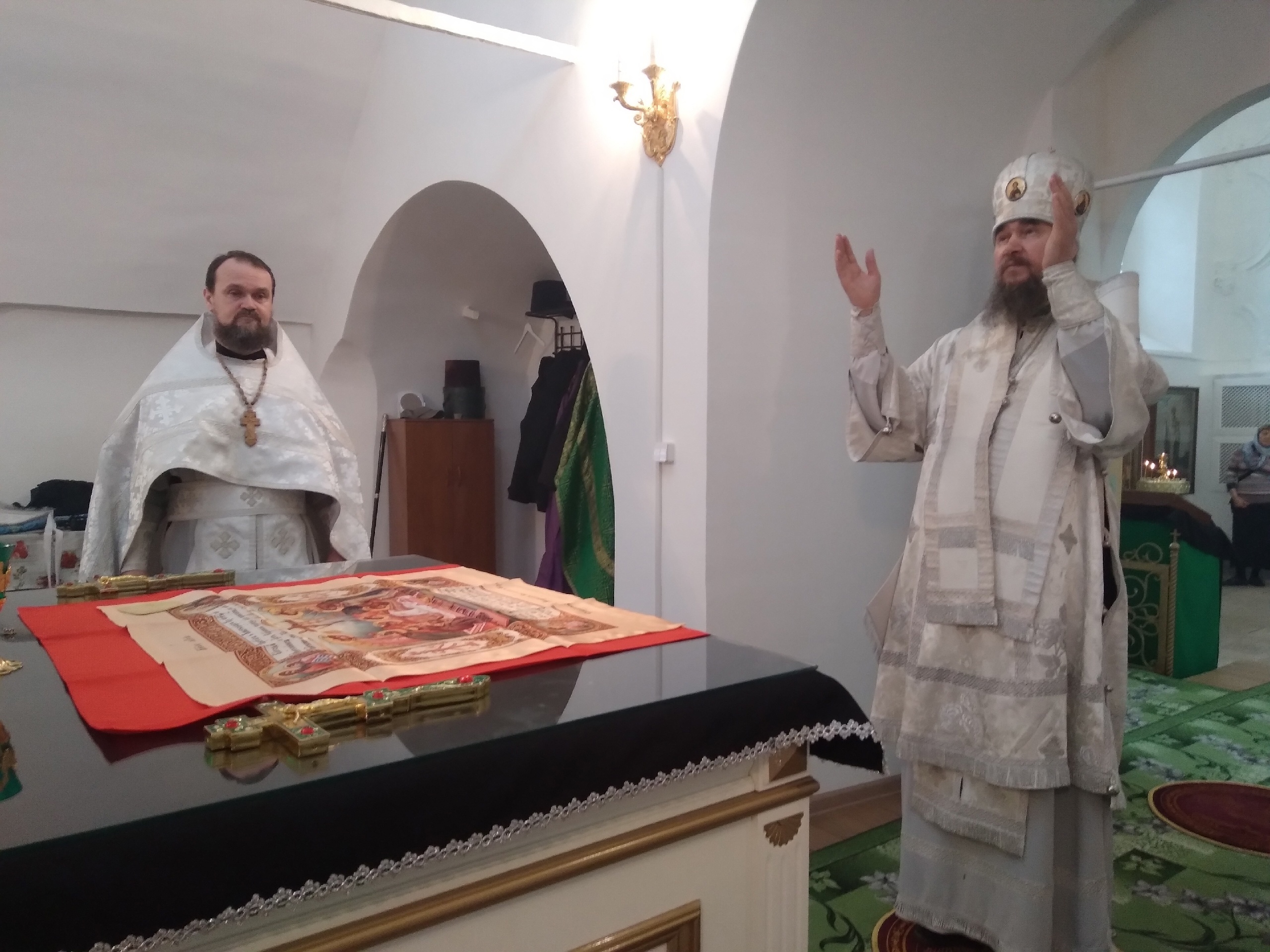 27 апреля в притворе Благовещенской церкви епископ Великоустюжский и Тотемский Фотий совершил молебен и освящение церковной лавки. Владыке сослужили благочинный
