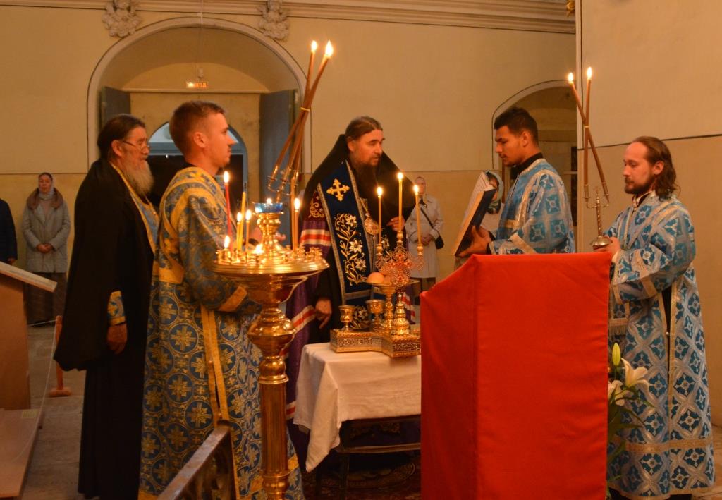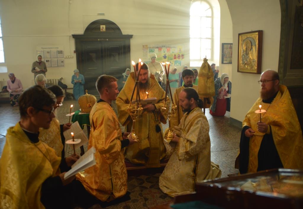 Накануне воскресного дня там же Преосвященнейший Фотий совершил вечернее богослужение. Его Преосвященству сослужили клирики Прокопьевского собора иерей