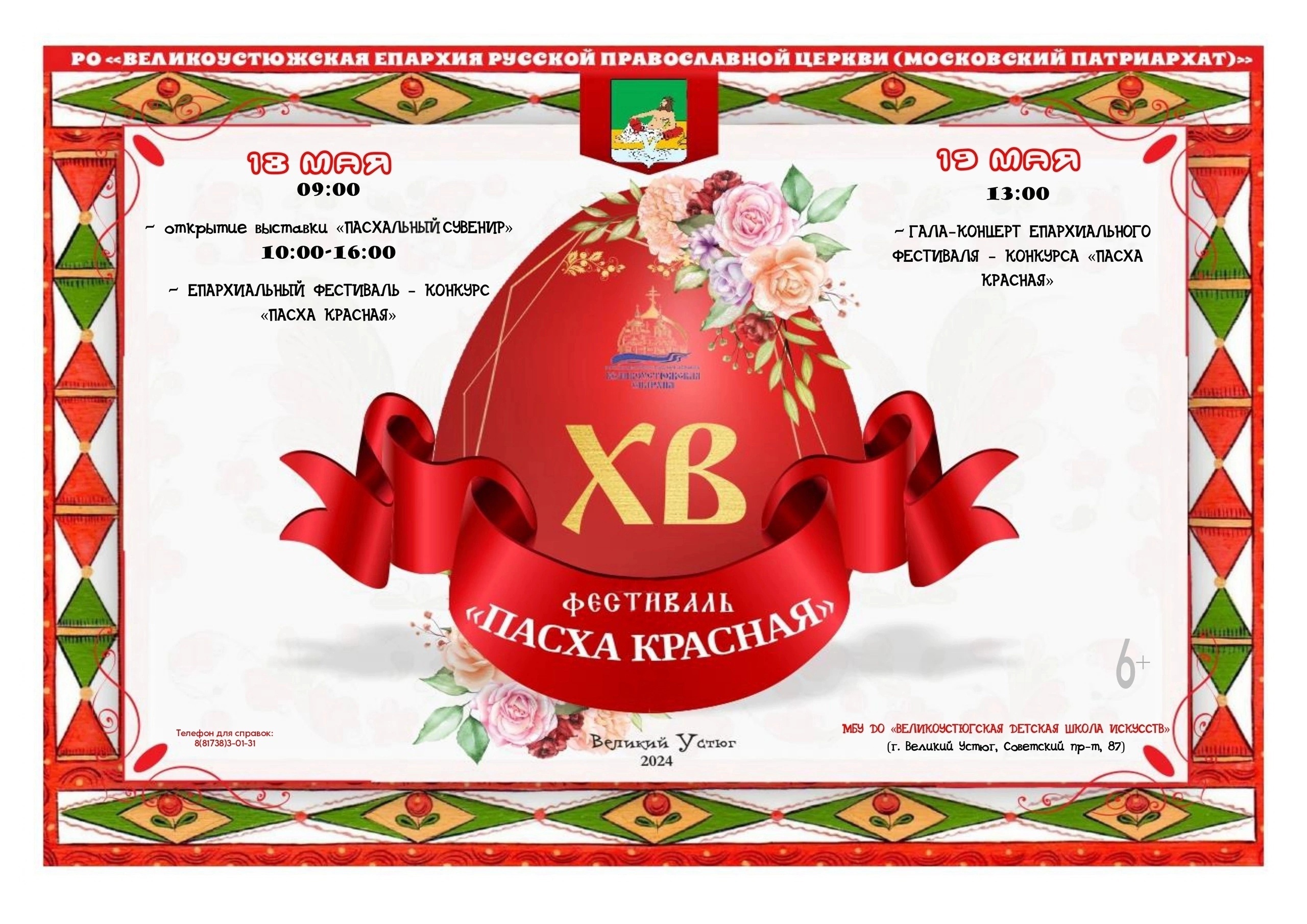 Публикуем фотографии прошедшего 18-19 мая в Великом Устюге первого епархиального фестиваля-конкурса «Пасха Красная» Фотоальбом фестиваля https://vk.com/album-110226964_301221433