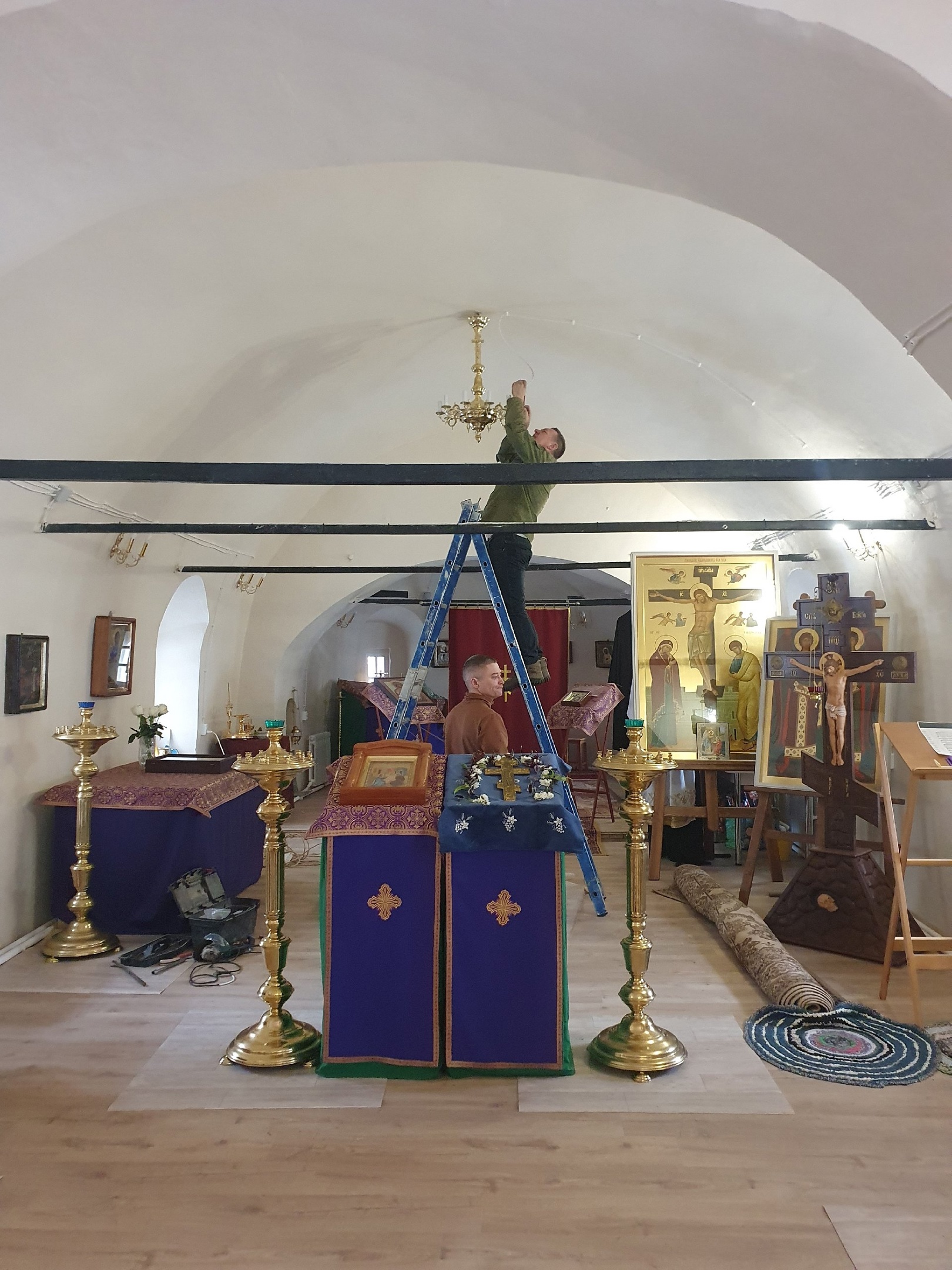 Добрая весть из Михайло-Архангельского монастыря. 10 апреля на сводах Киприановской церкви были установлены паникадила, приобретённые на пожертвования прихожан.